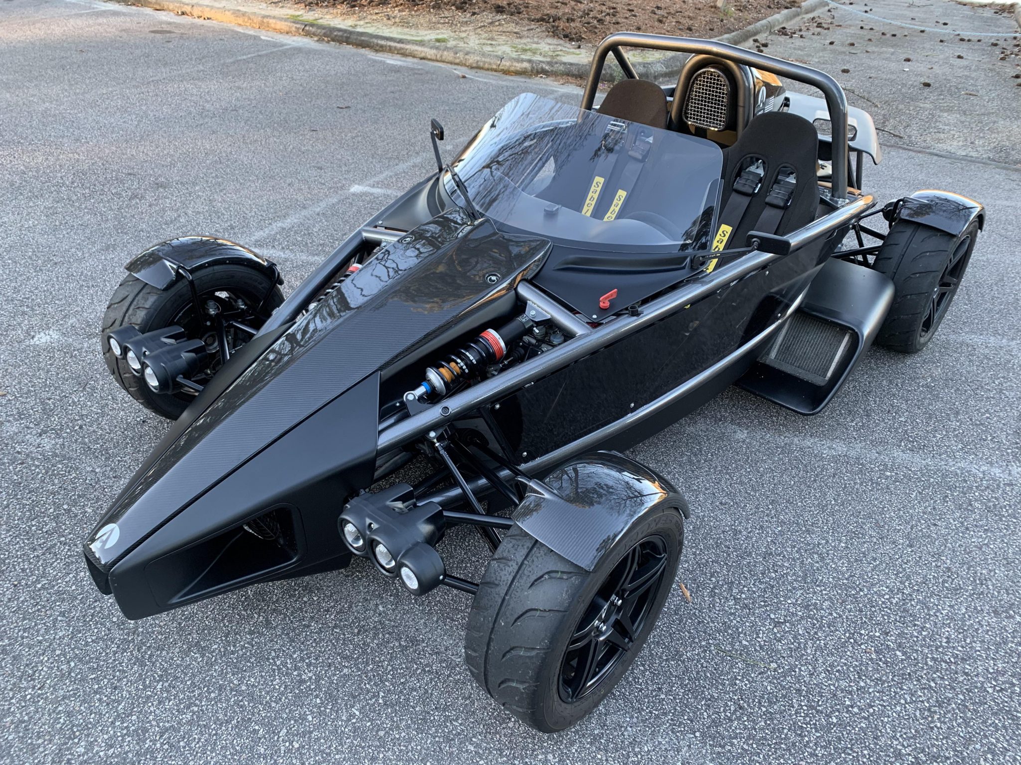 Factory 15″ and 16″ wheels are finished in black and were mounted with Toyo Proxes R888 tires in July 2020. JRi adjustable dampers with bell cranks are fitted, along with a billet aluminum steering rack and race-grade tie rod ends. Braking is handled by four-piston Alcon calipers and slotted rotors at all four corners. Service performed by TMI AutoTech of South Boston, Virginia in December 2020 included an alignment, a ride-height adjustment, and a brake fluid flush.