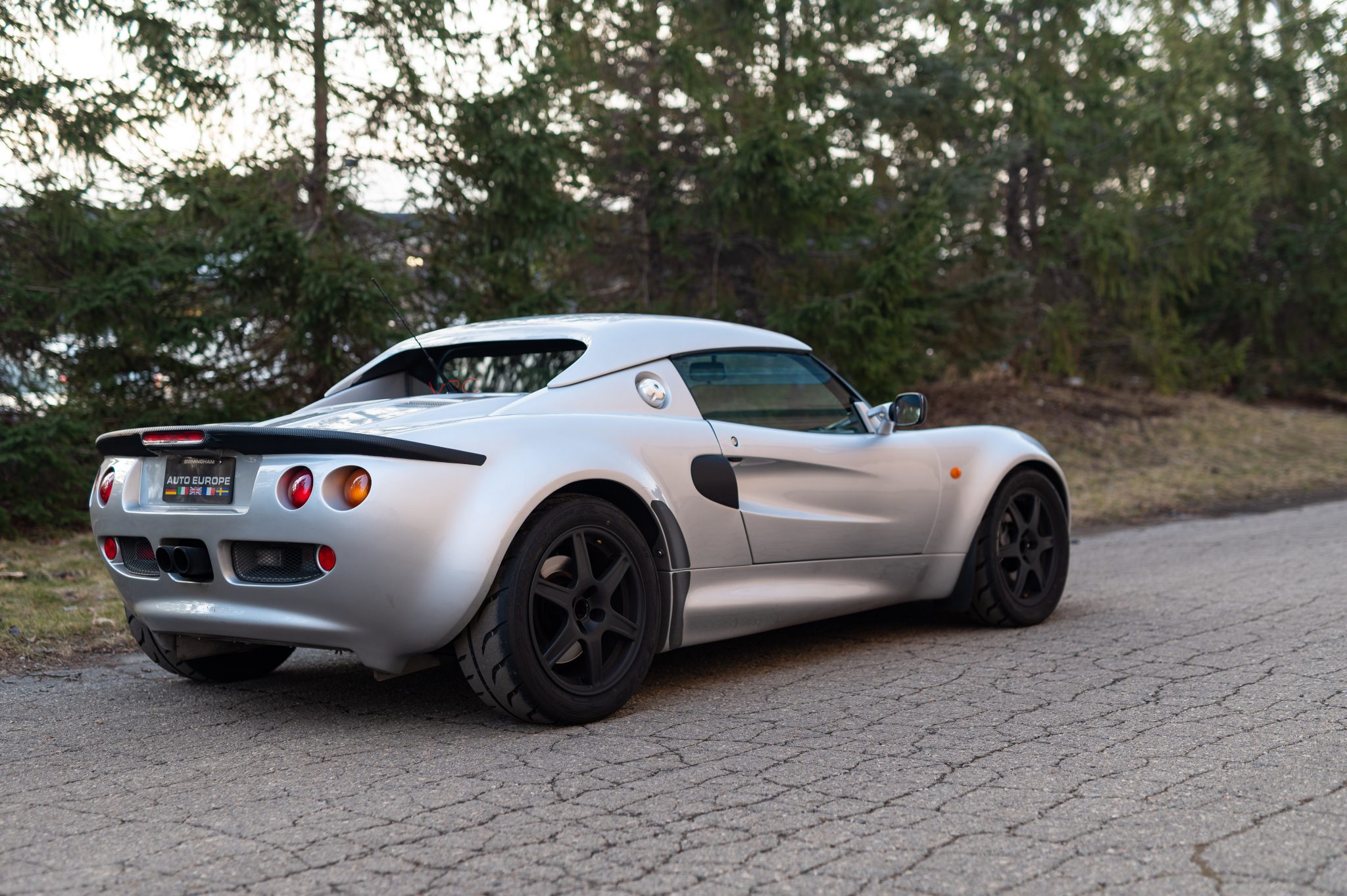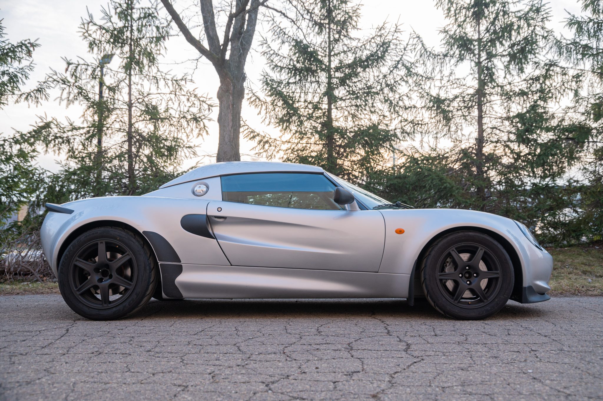 Staggered-diameter black alloy wheels measure 15″ up front and 16″ out back and are fitted with Toyo Proxes R888R tires sized 195/50 and 225/45 respectively. The car is reportedly equipped with Motorsport Elise shocks and springs, and the brake fluid was flushed in September 2020.