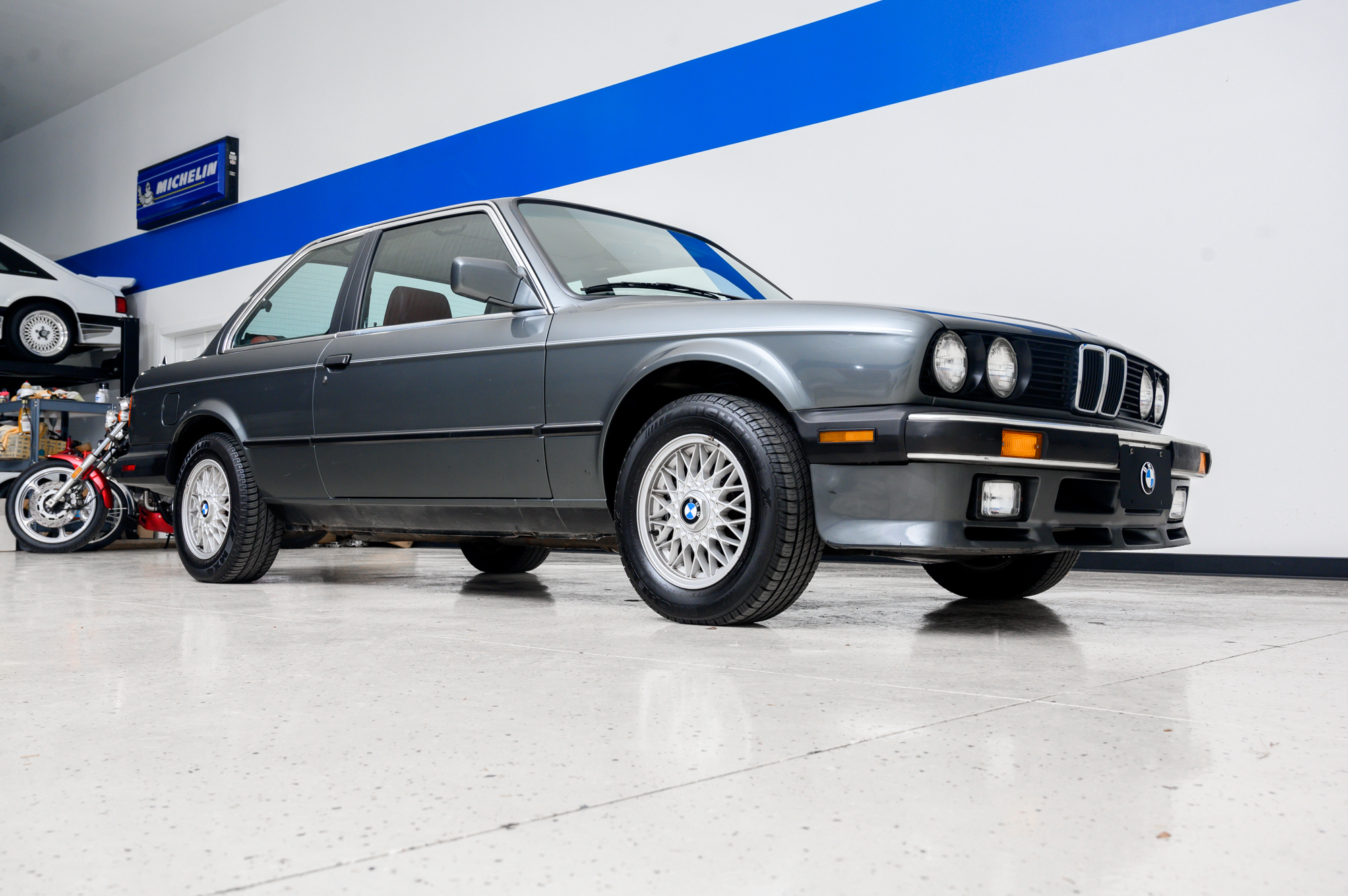 Silver 14″ basketweave wheels with BMW-roundel center caps wear 195/65 Michelin MX4 tires. A full-size spare with an older tire is located in the trunk. The brake master cylinder and a brake pad wear sensor were replaced in preparation for sale.