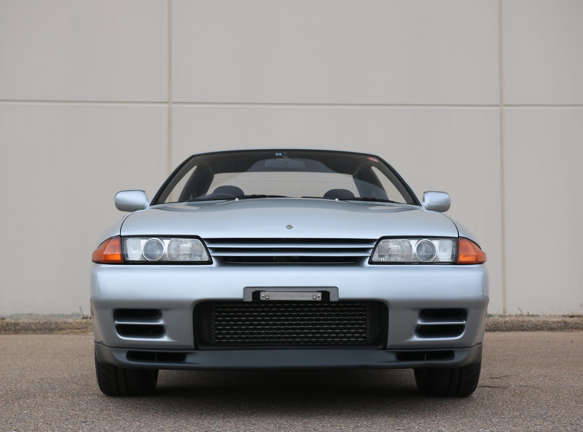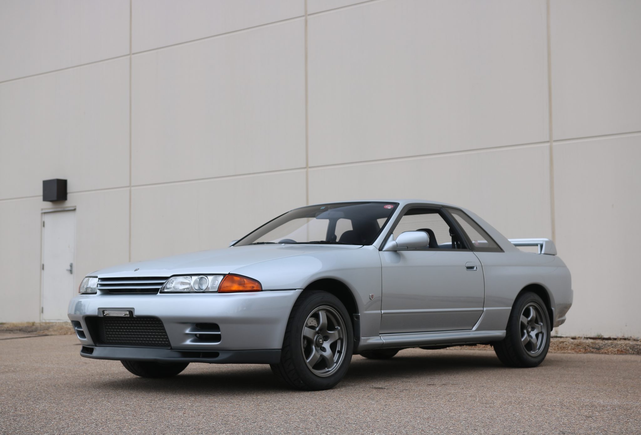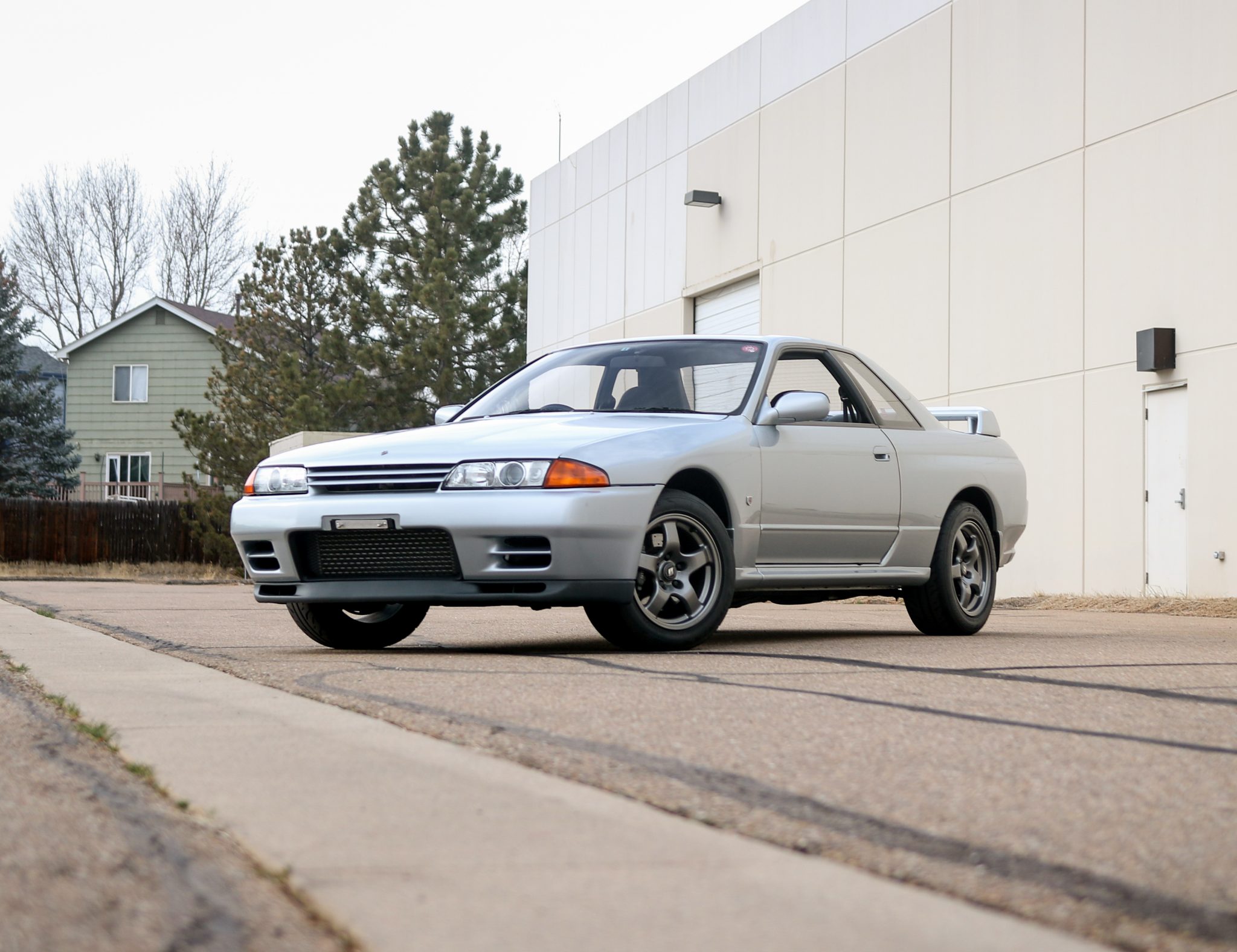 Factory 16″ five-spoke alloy wheels are wrapped in Bridgestone Potenza RE71R tires showing 2016 production codes. The car is equipped with Super HICAS four-wheel steering and the brakes are fitted with drilled rotors.