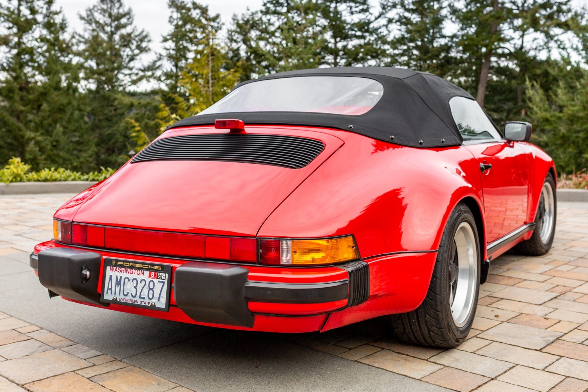 Staggered-width 16″ Fuchs wheels feature black centers with anodized lips and were recently wrapped in Pirelli P Zero Collezione tires. The Speedster’s suspension and cross-drilled disc brakes were shared with the contemporary Turbo.
