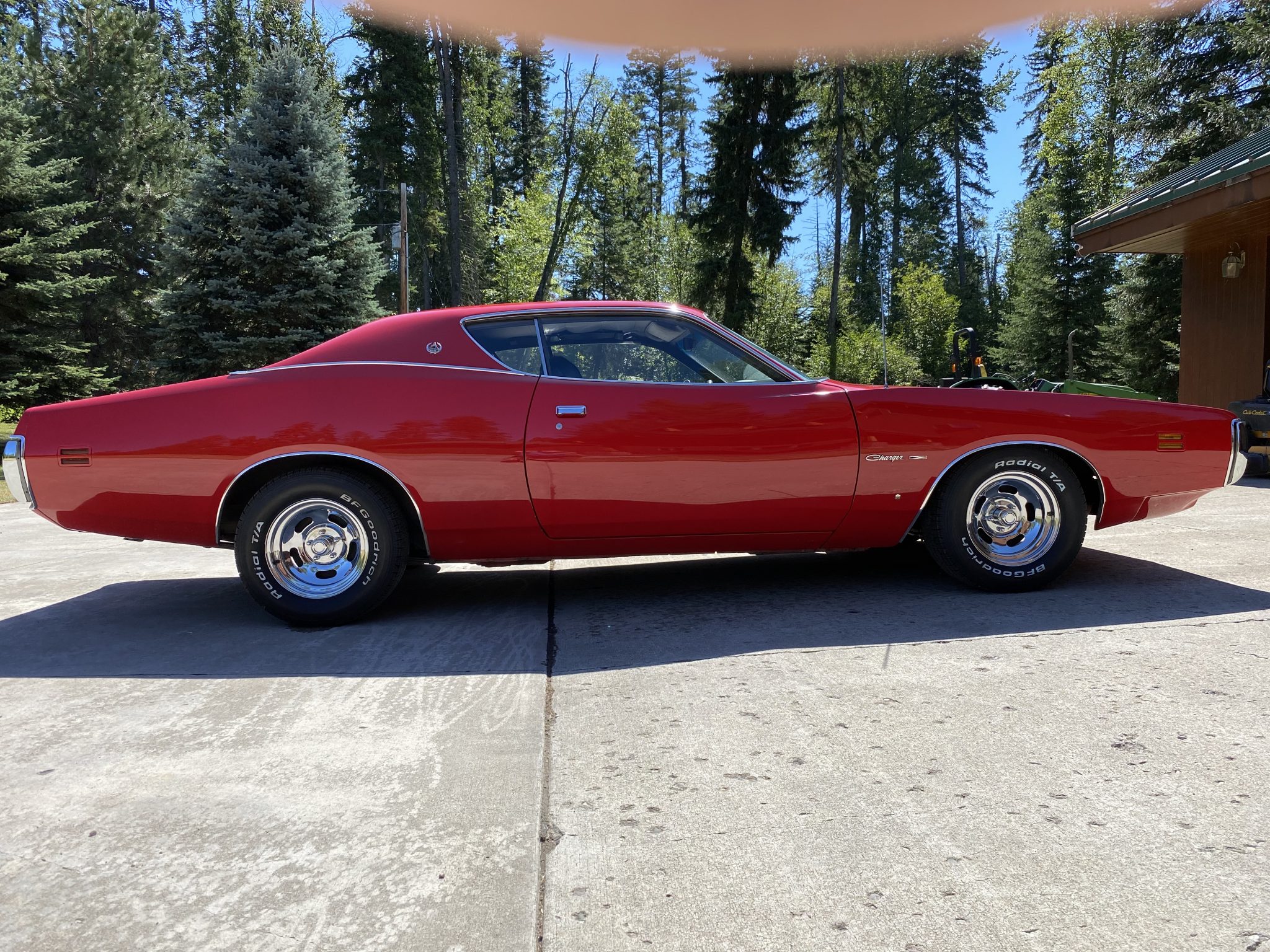 Aftermarket chrome wheels are wrapped with BFGoodrich Radial T/A white-letter tires. A spare and jack are located in the trunk, and the factory wheel covers are included in the sale.