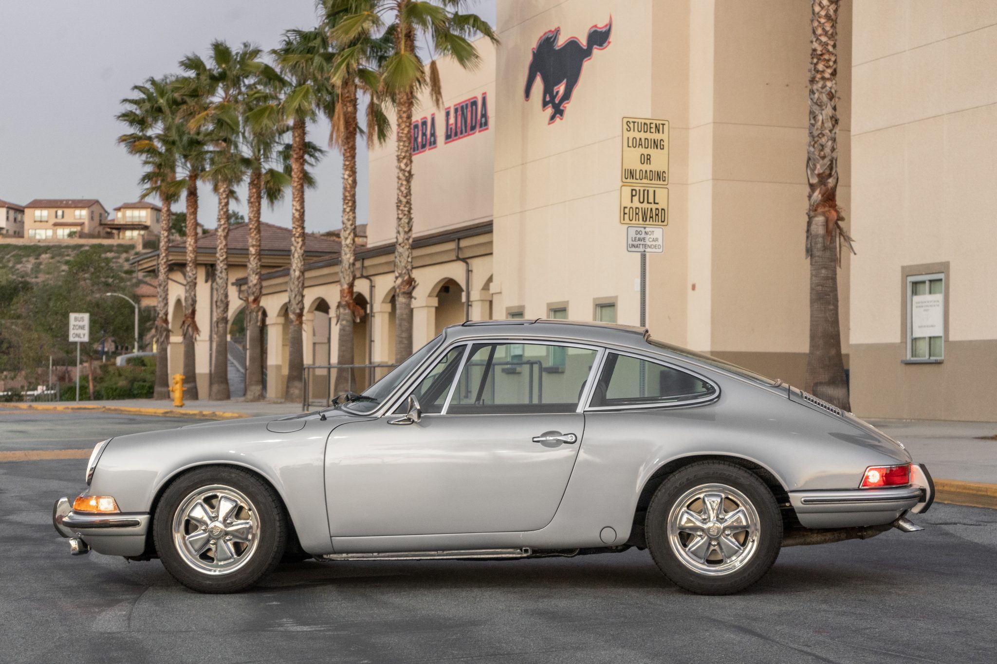 Chrome-finished 15″ Fuchs-style wheels are wrapped in 195/60 Goodyear Eagle Sport tires manufactured in 2015. The car was equipped with Koni shocks from the factory, and disc brakes are fitted at all four corners.