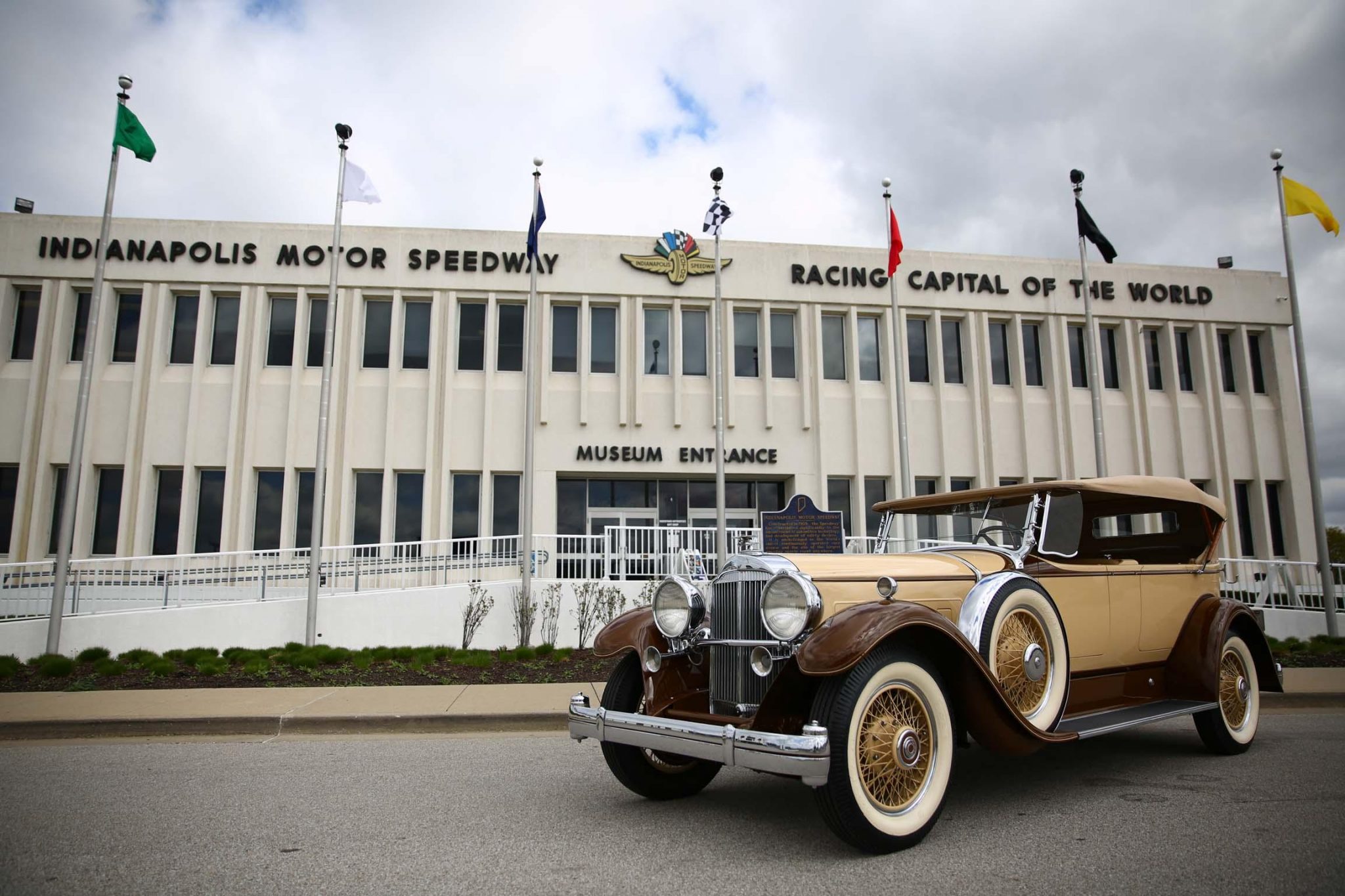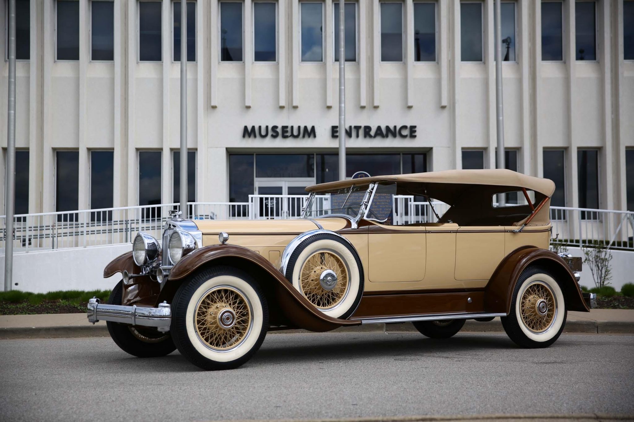 The soft top is equipped with wood bows and a beveled glass rear window and can be seen raised and lowered in the gallery. Additional equipment includes polished bumpers, dual taillights, a fold-down luggage rack, a folding windscreen for rear-seat passengers, front wind wings, fender-mounted lights, a polished radiator surround, and dual horns. A hood ornament based on the Lockheed Air Express that Turner raced in the 1930s was installed during that decade and features a spinning propeller. A pair of period AGA 10″ diameter running-board-mounted spotlights are included in the sale and can be seen in the gallery.