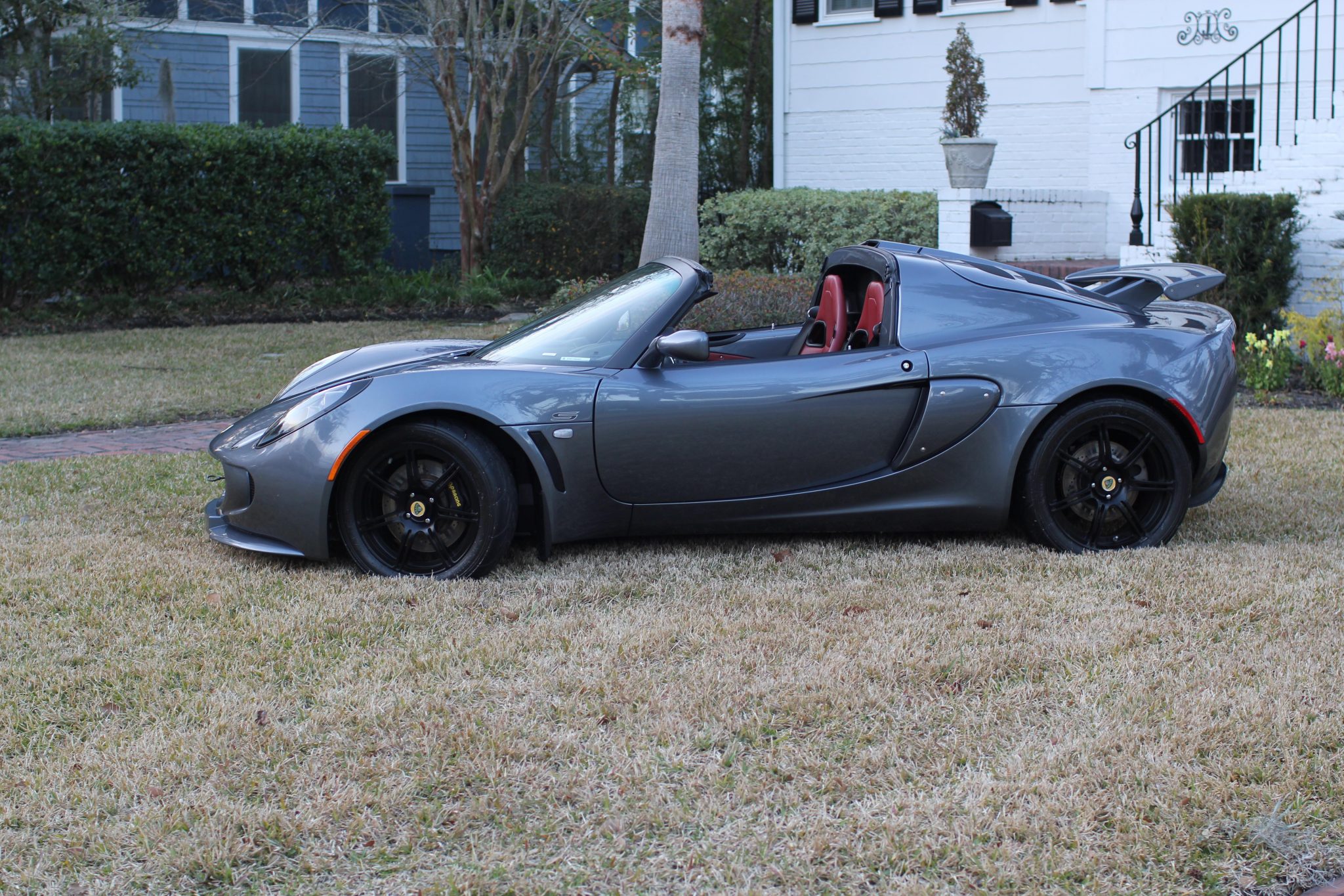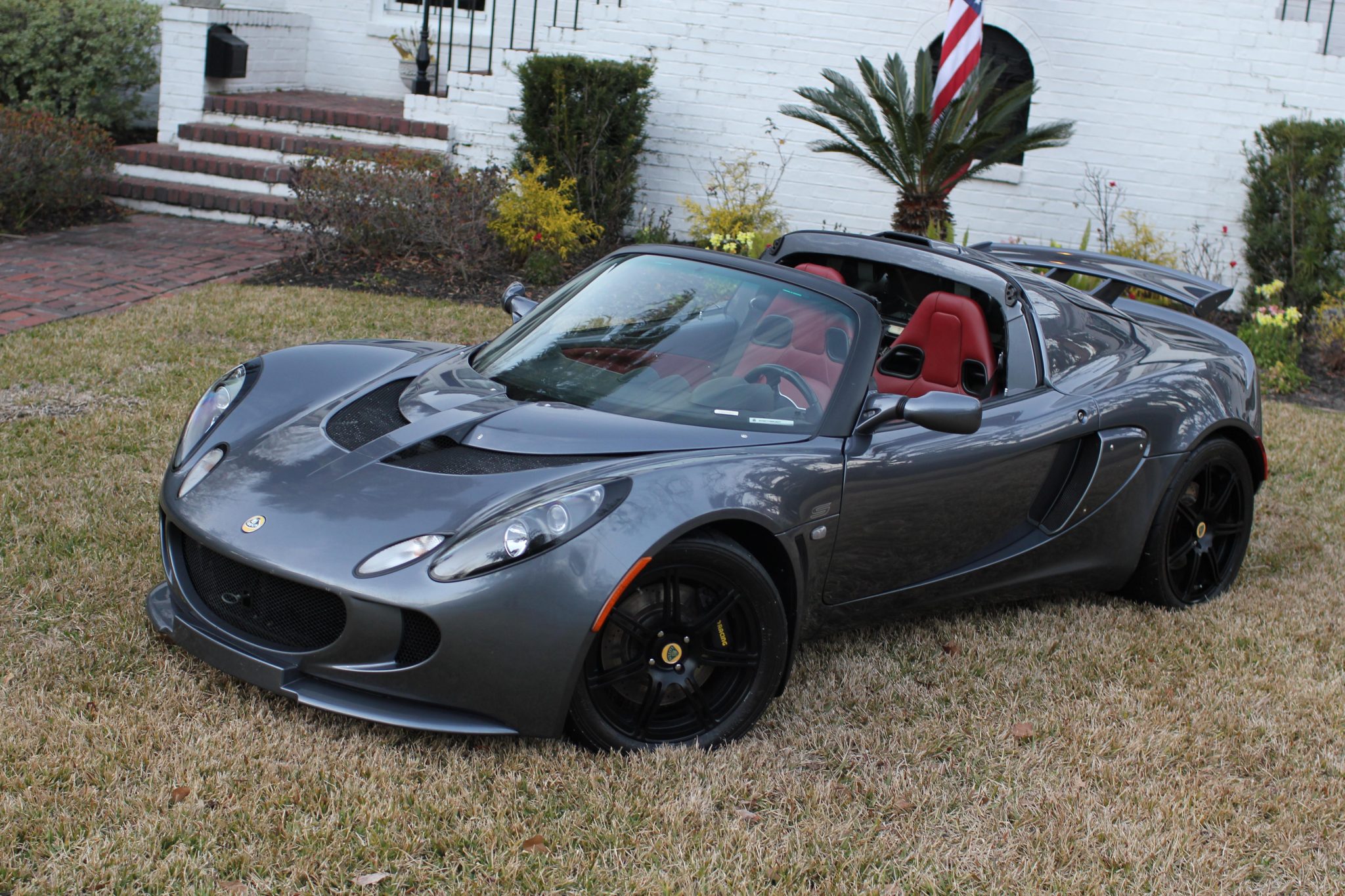 LSS split-spoke forged alloy wheels measure 16″ in front and 17″ out back and are finished in black and wrapped in Yokohama Advan tires. Braking is handled by cross-drilled and ventilated rotors paired with AP Racing calipers at the front. The suspension features adjustable Bilstein dampers as well as Eibach springs and an adjustable front anti-sway bar.