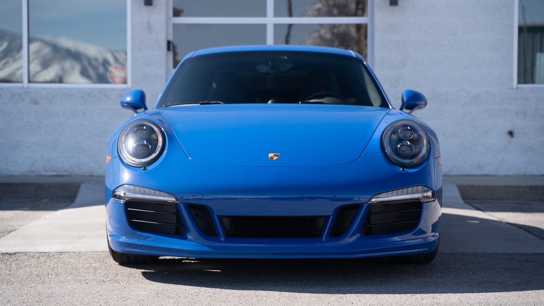 The 20″ Sport Classic wheels are painted semi-gloss black with machined centers and rims and are mounted with 245/35 front and 305/30 rear Pirelli P Zero tires showing 2015 date codes. The braking system is shared with the contemporary 911 GTS model and features cross-drilled rotors as well as red-finished six-piston calipers up front and four-piston calipers out back.