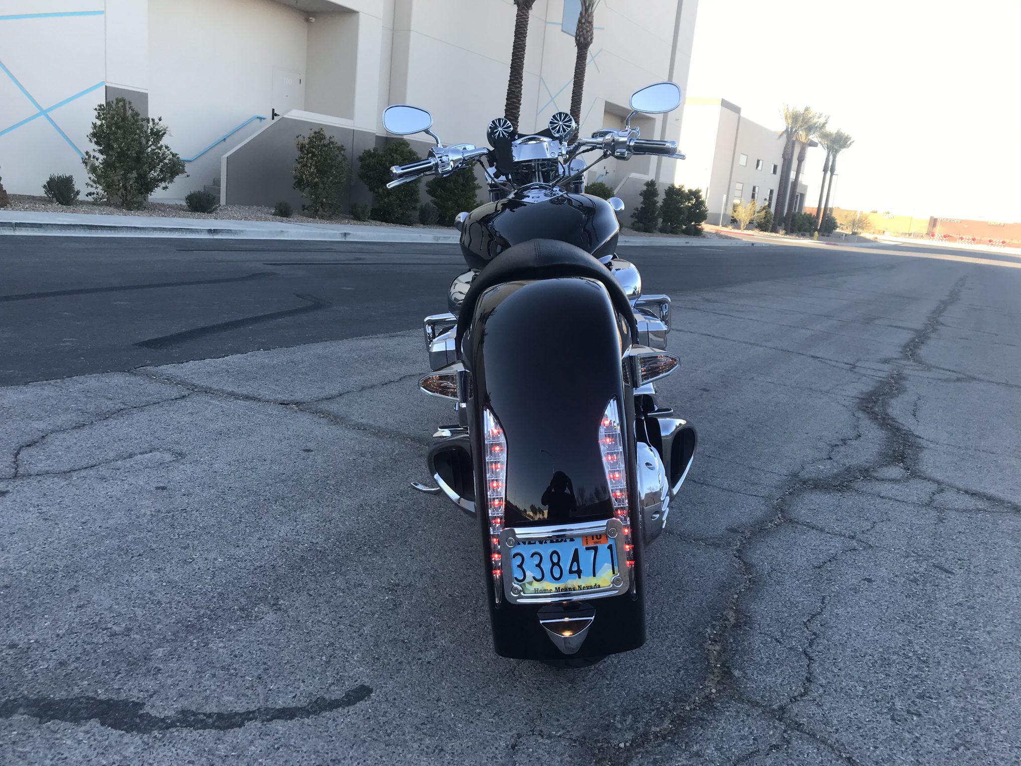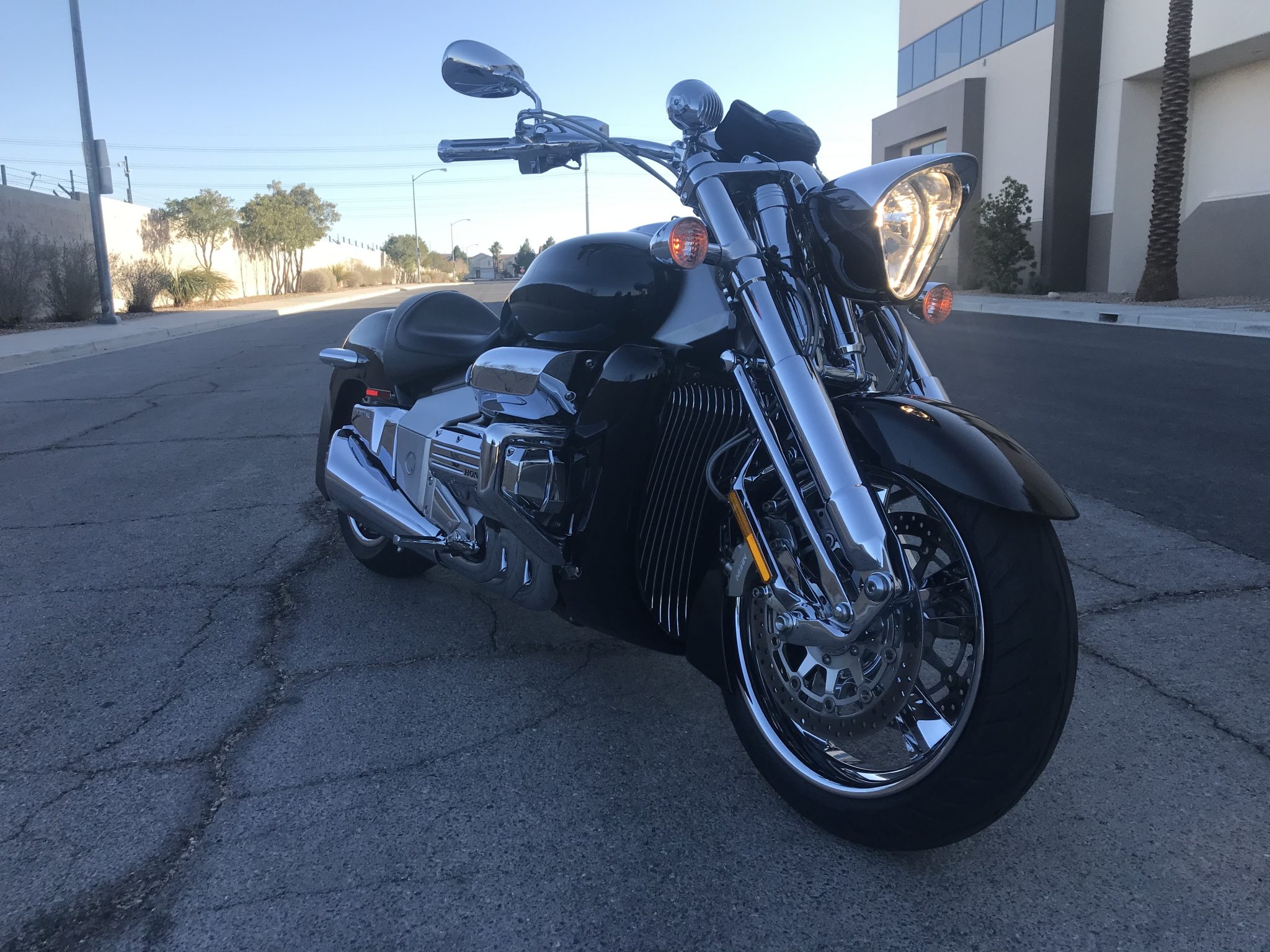 Five-spoke aluminum wheels wear Dunlop tires measuring 150/60-18 front and 180/55-17 rear. Suspension consists of a chrome leading-link front end and a single-sided Pro-Link swingarm that includes the driveshaft enclosure. Nissin disc brakes feature dual three-piston front calipers and a single two-piston version in the rear, and were adjusted by the seller.