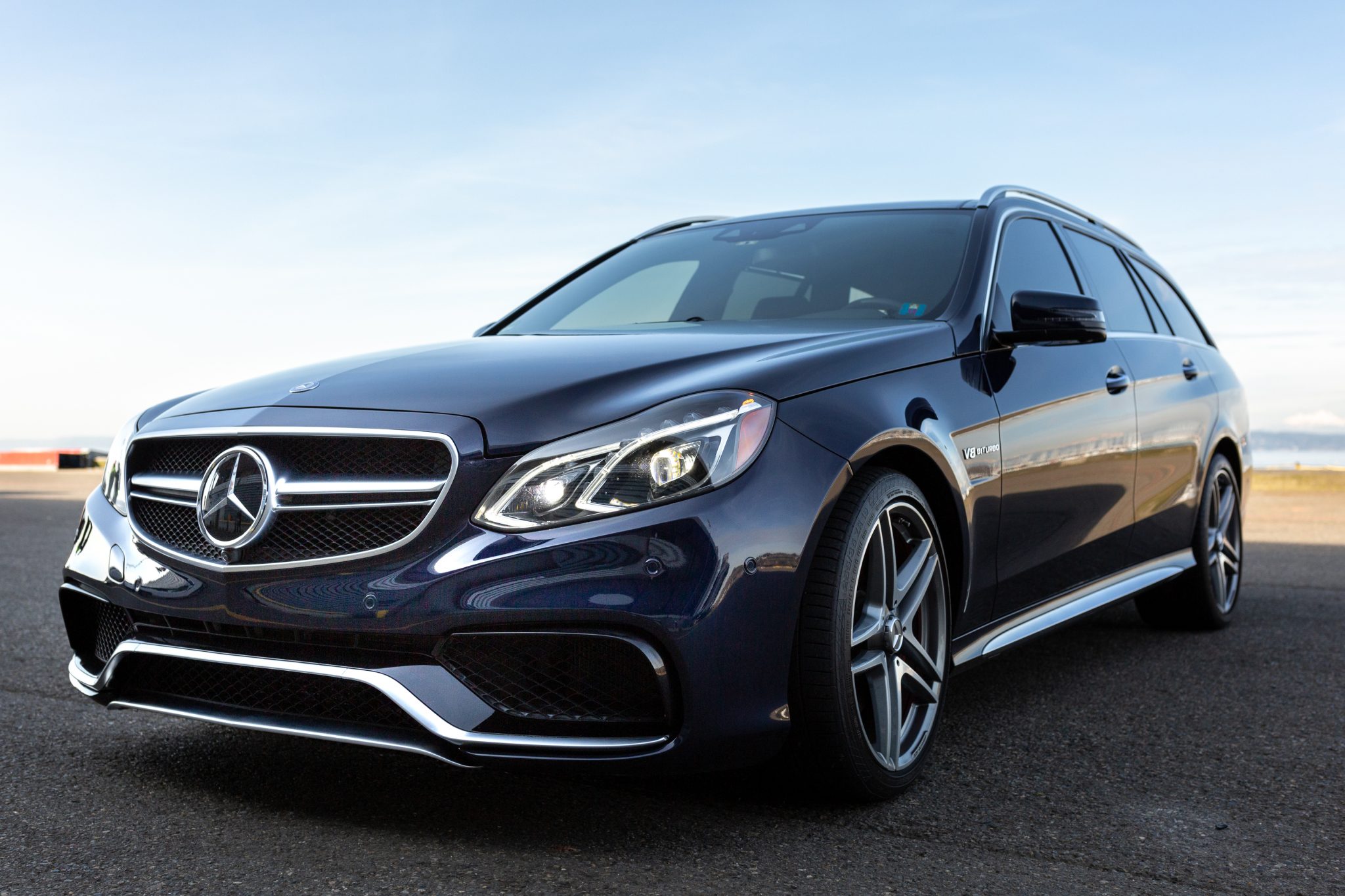 AMG 19″ twin-spoke wheels are mounted with Continental ContiSportContact tires displaying 2013 date codes and measuring 255/35 up front and 285/30 out back. Braking is provided by red-finished multi-piston calipers over cross-drilled and slotted rotors all around. The Driver Assistance package adds active blind spot assistance, active lane keeping assistance, cross-traffic assistance, pre-safe braking functions with pedestrian recognition, and Distronic Plus cruise control with steering assist. Curb marks are displayed in the gallery below.