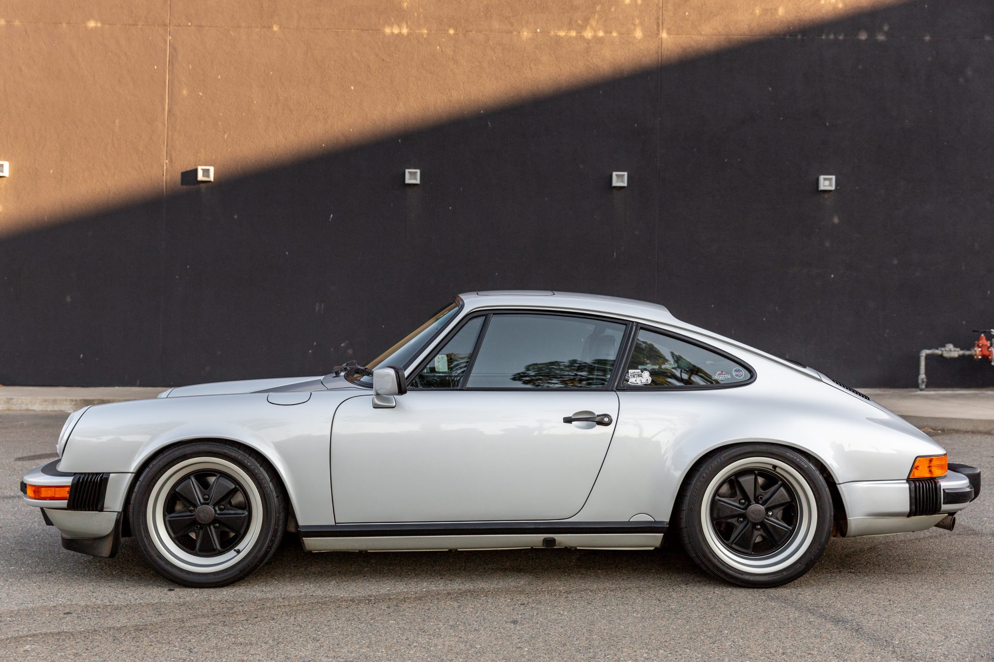 Aftermarket 17″ Rota Fox wheels are wrapped in Sumitomo HTR Z III tires that show 2015 date codes. Elephant Racing 21mm and 28mm torsion bars have been added, and braking is handled by four-wheel discs. The seller notes that the right-front tire rubs going over jarring bumps on rare occasions, and the factory 16″ Fuchs wheels are included in the sale and shown in the gallery below.