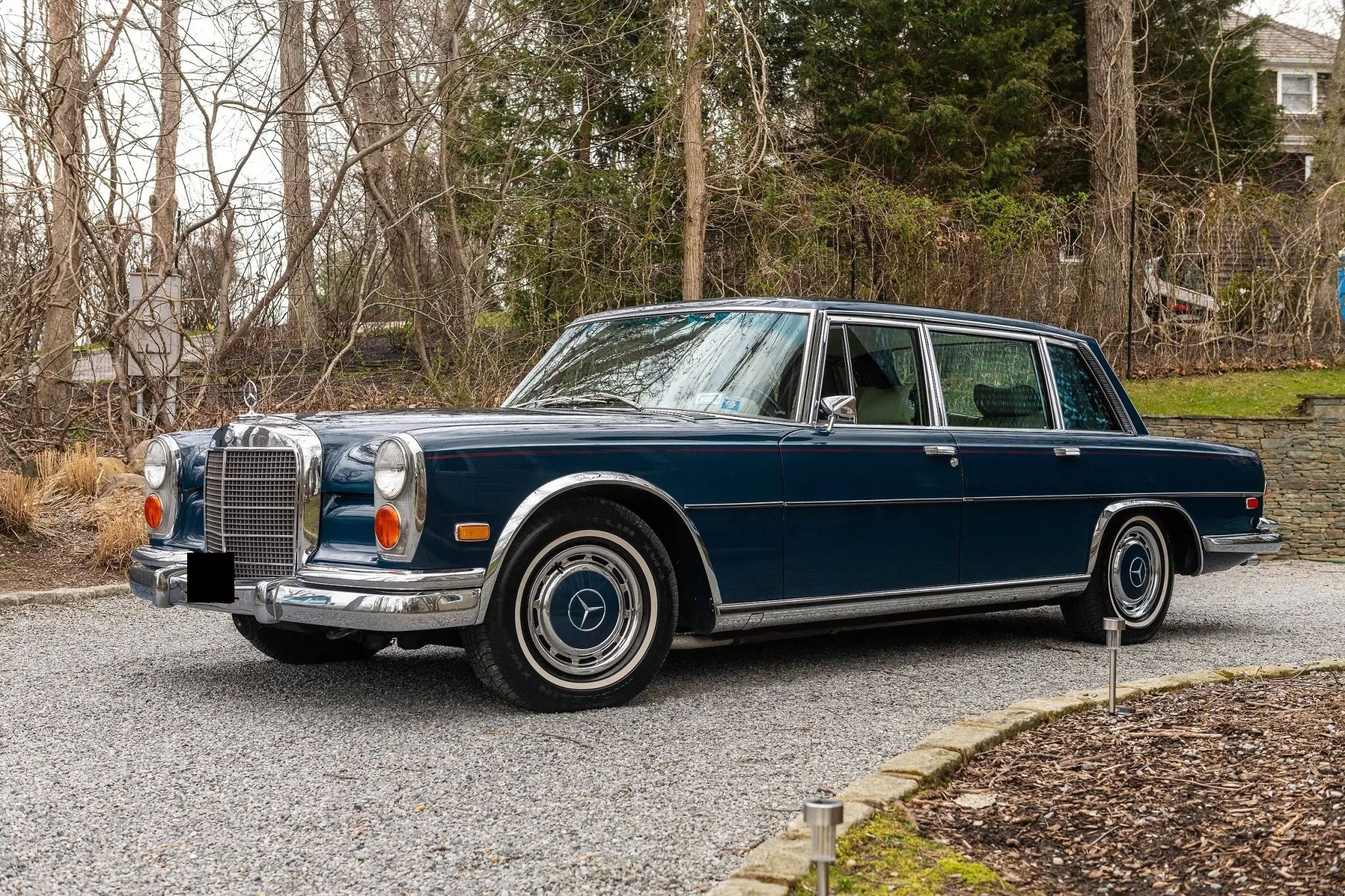 Steel wheels wear single-piece chrome covers with body-colored centers and are mounted with 15″ Michelin XW4 whitewall tires. A pneumatic self-leveling suspension system with driver-adjustable shock absorbers was standard on the 600. Four-wheel disc brakes are actuated by a dual-circuit hydraulic system assisted by pressurized air, with twin calipers acting on each front rotor.