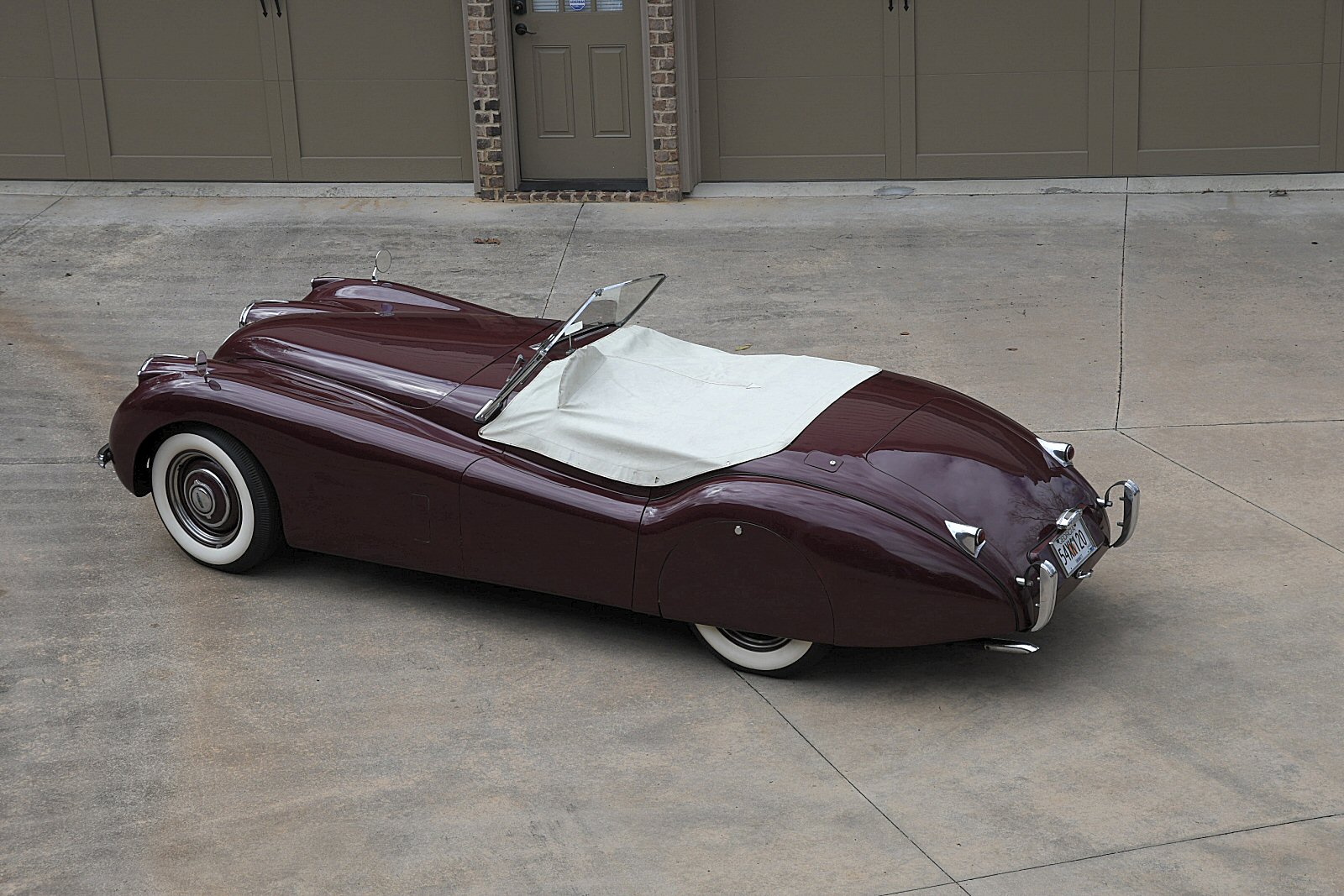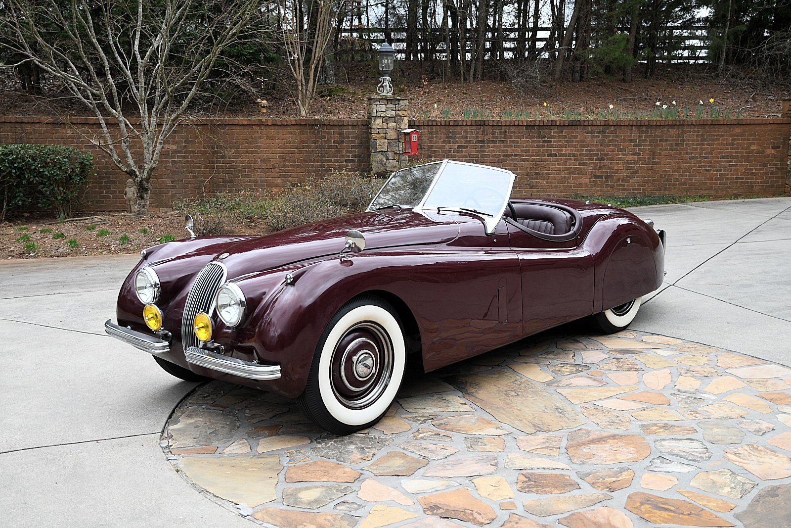 The body-colored steel wheels feature Jaguar hubcaps with polished trim rings and are wrapped in whitewall tires that were fitted in 2017. Additional work that year included replacement of the brake master cylinder and all four wheel cylinders. The front brakes were re-lined in 2019, and a full-size spare wheel is found in the rear storage area.