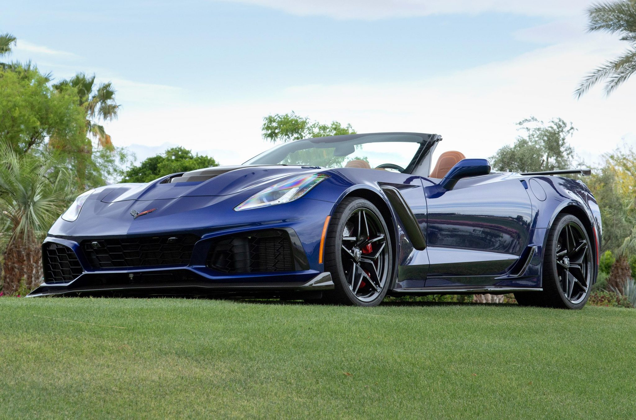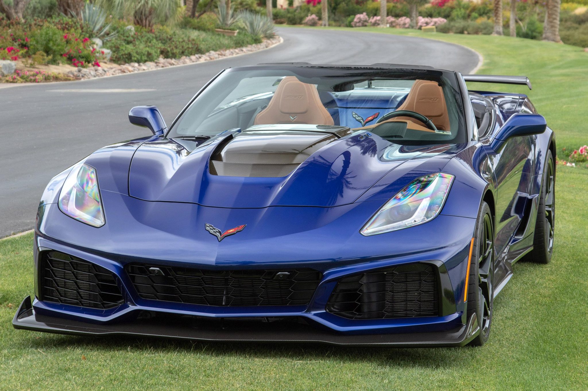 Graphite-painted aluminum wheels measure 19″ up front and 20″ at the rear and wear Michelin Pilot Super Sport tires measuring 285/30 and 335/25, respectively. The ZR1 Performance Suspension features Magnetic Ride Control, while stopping power is provided by cross-drilled carbon-ceramic discs with red-finished Brembo calipers.