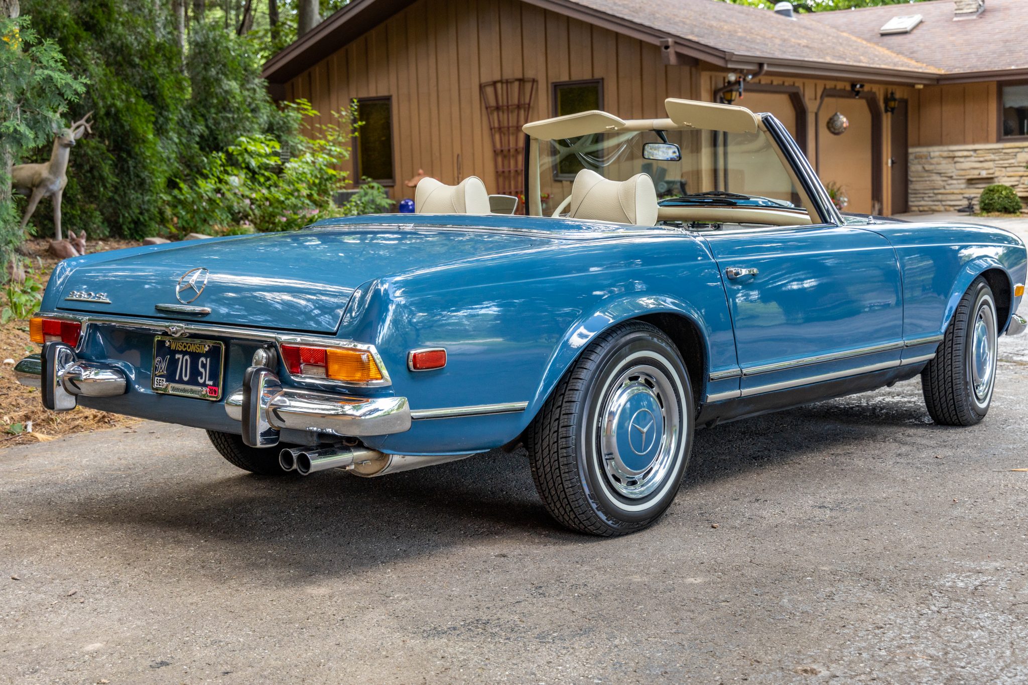 Steel 14″ wheels wear polished covers with color-matched centers and are mounted with Toyo Extensa A/S whitewall tires. Equipment includes power-assisted steering and four-wheel disc brakes, and work in August 2020 included flushing the brake fluid and replacing the subframe bushings, front and rear shocks, a steering damper, rear shock mounts, and rear trailing-arm mounts.