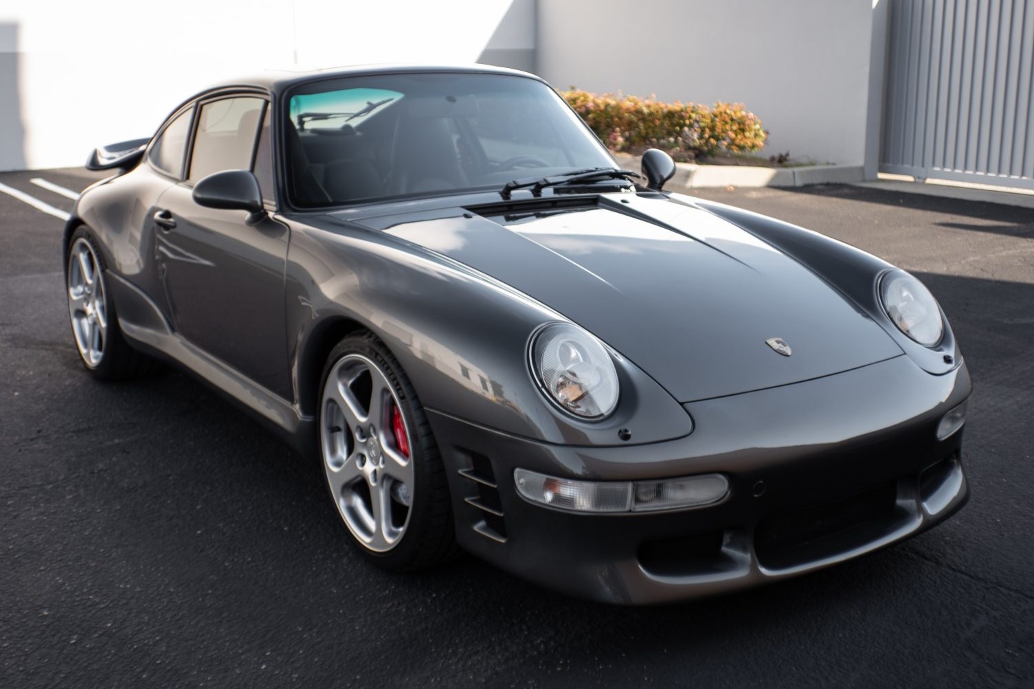 Five-spoke 19″ RUF wheels are wrapped in Michelin Pilot Sport 4 S tires that show 2018 date codes. Braking is handled by red four-piston calipers and cross-drilled rotors all around.