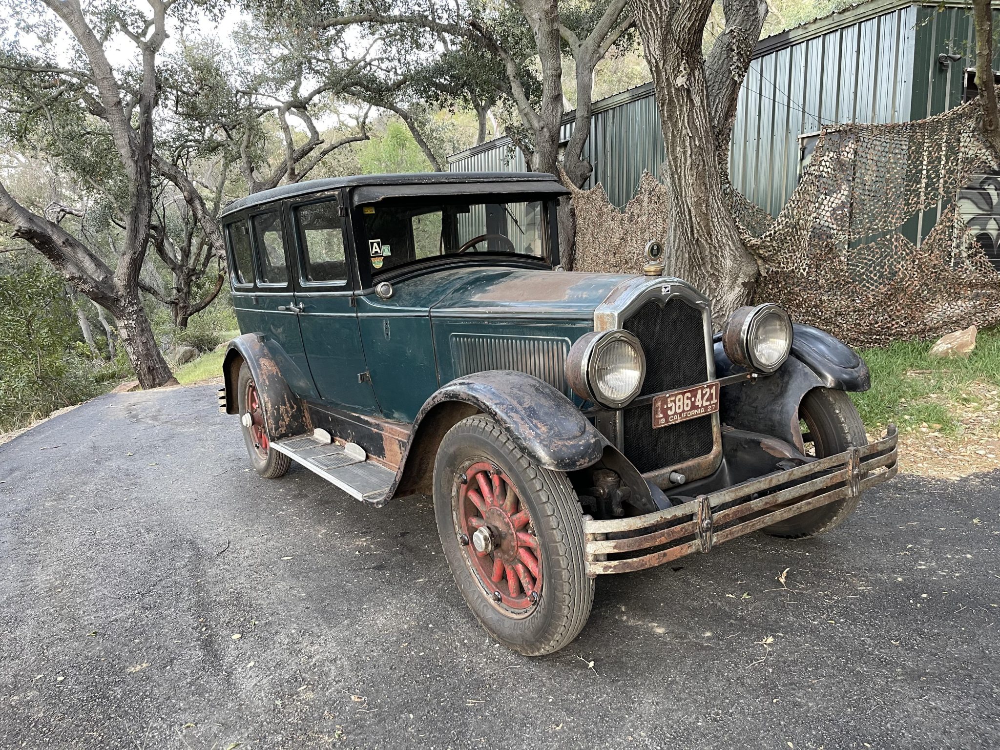 Red-painted 21″ wooden-spoke wheels are fitted with BFGoodrich Silvertown tires that were installed under current ownership. The front suspension was refreshed, the brakes were adjusted, the leaf springs were refurbished, and an alignment was performed by the seller.
