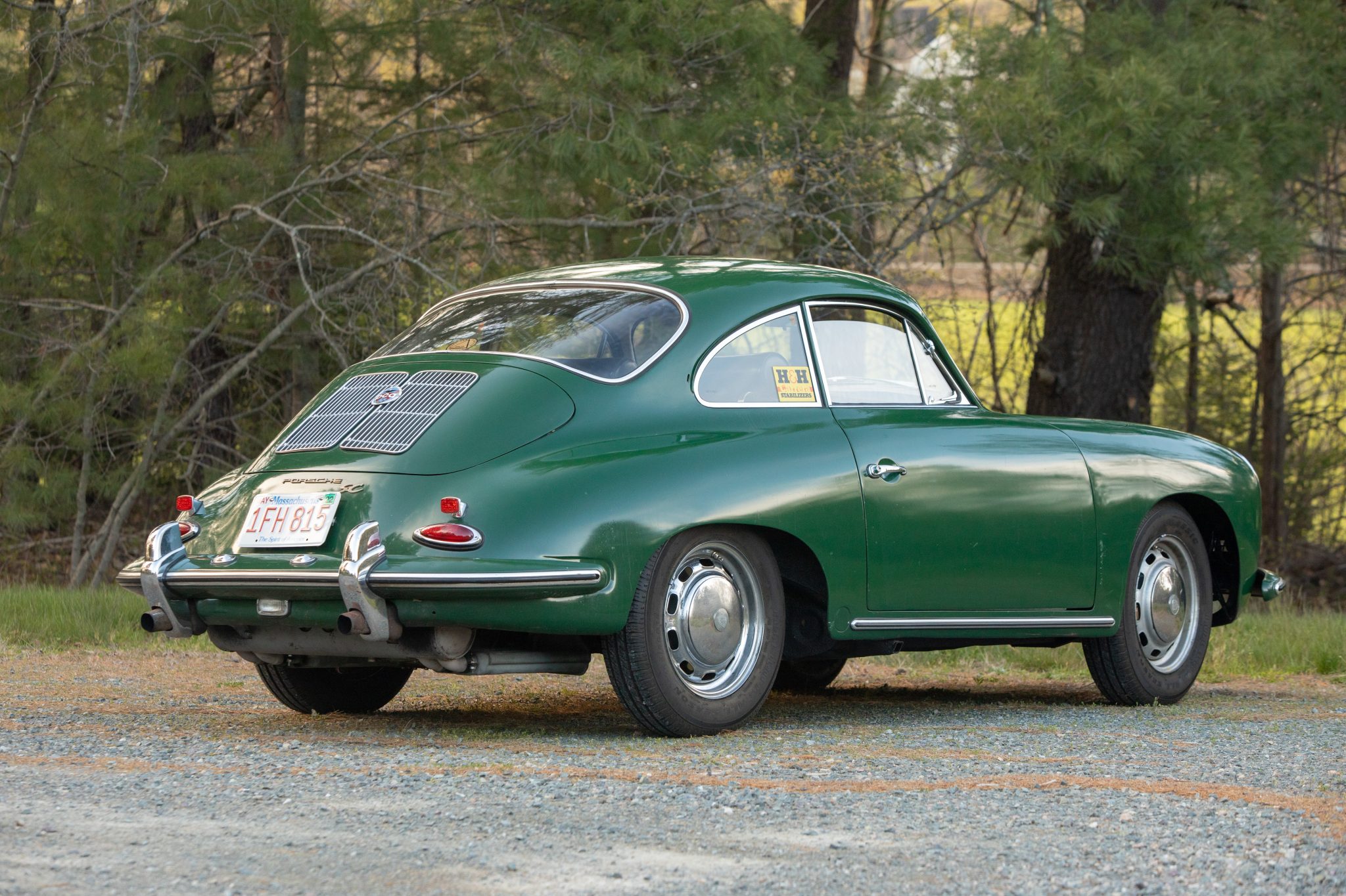 The 15″ ventilated steel wheels wear chrome hubcaps and are mounted with 165/80 Classic All-Season radial tires. A matching spare wheel with a Michelin tire is mounted in the front trunk. Koni red shocks were fitted at all four corners in July 2014, along with replacement axle boots and tie rod ends. A rebuild of the four-wheel disc brake system was performed at the same time.