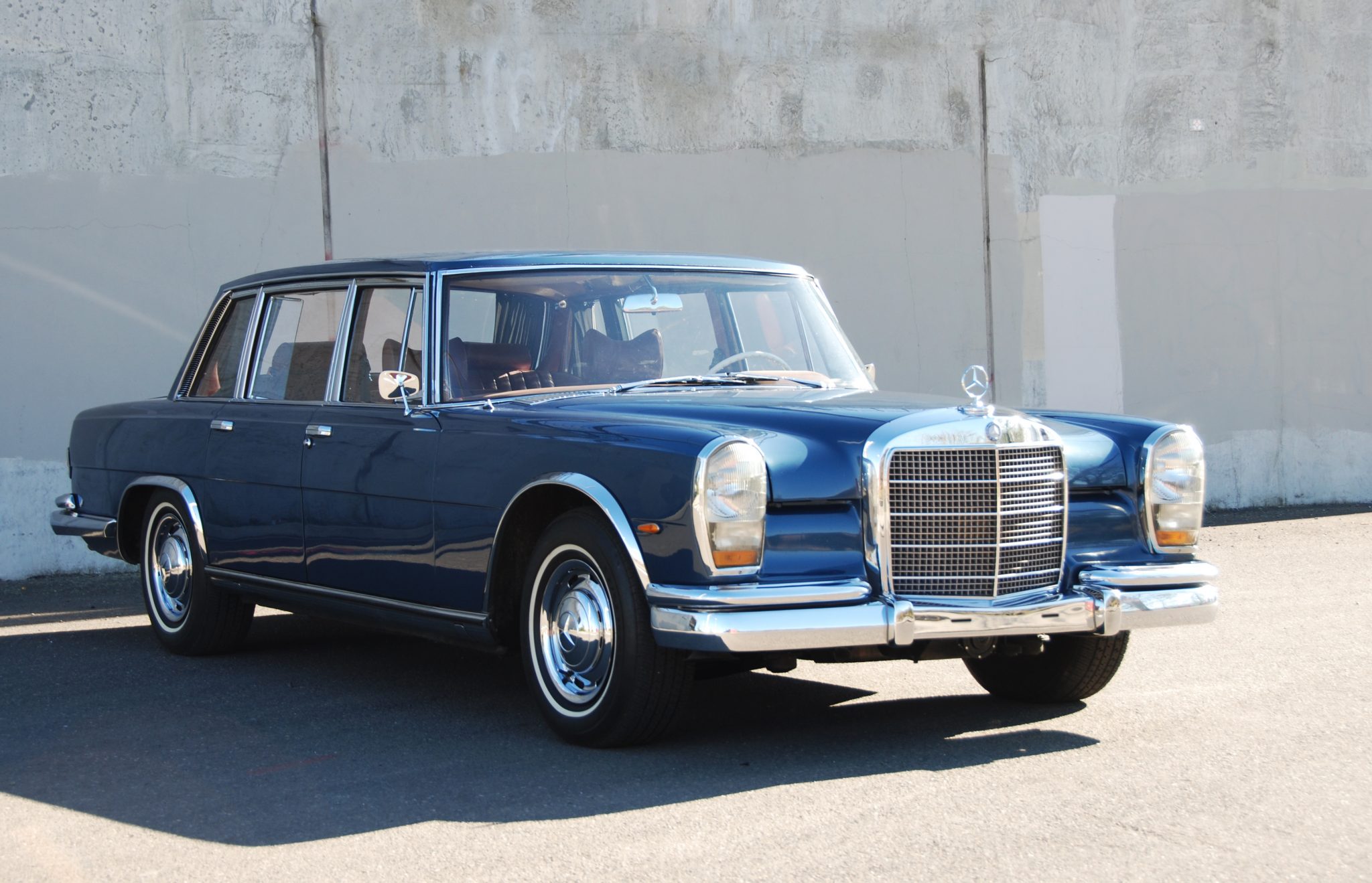15″ steel wheels wear chrome covers and are mounted with 235/75 Michelin XH4 whitewall tires. The car is equipped with self-leveling air suspension, and the air tank, valves, and bellows were refurbished under current ownership.