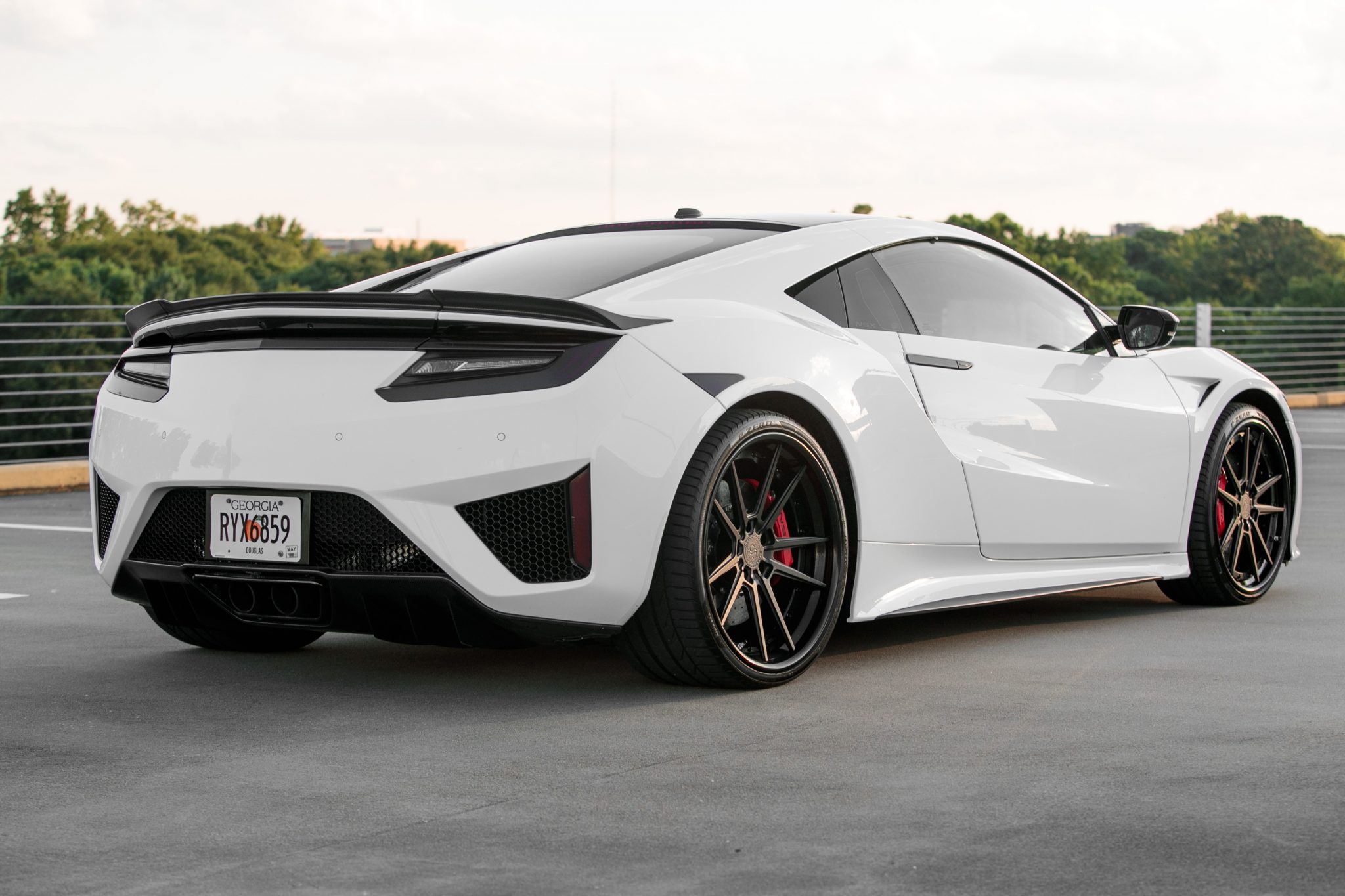 Black-finish Strasse SV1 FS-series wheels measure 20″ in diameter up front and 21″ out back and wear Pirelli P Zero tires. The car features double-wishbone front and multi-link rear suspension with magnetorheological dampers at each corner. Braking is provided by optional carbon-ceramic brake rotors and red-finish calipers.