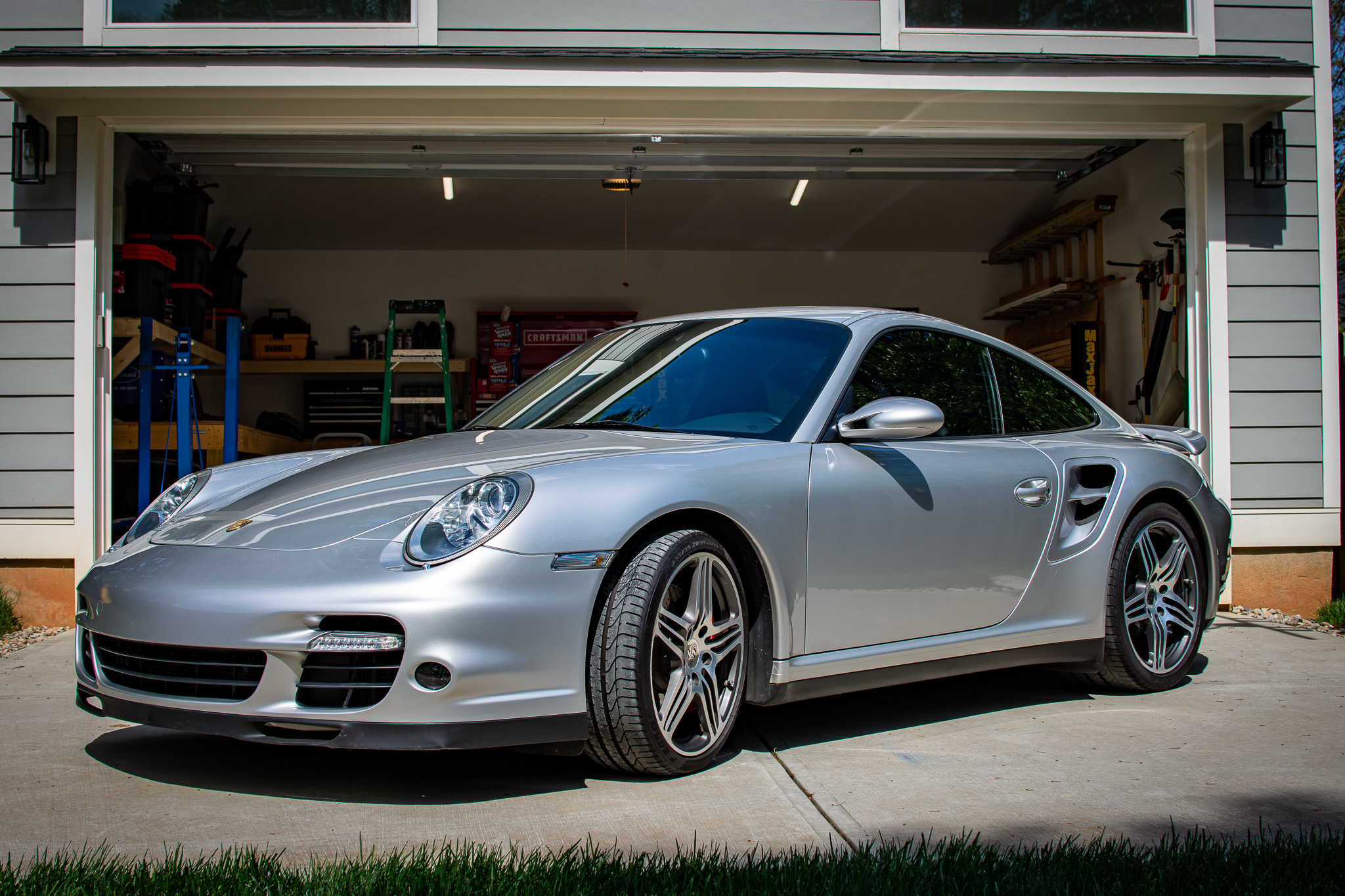 Factory 19″ forged-alloy Turbo wheels are mounted with Pirelli P-Zero tires showing 2018 date codes. Braking is handled by red-finished six-piston front and four-piston rear calipers over cross-drilled and vented rotors.