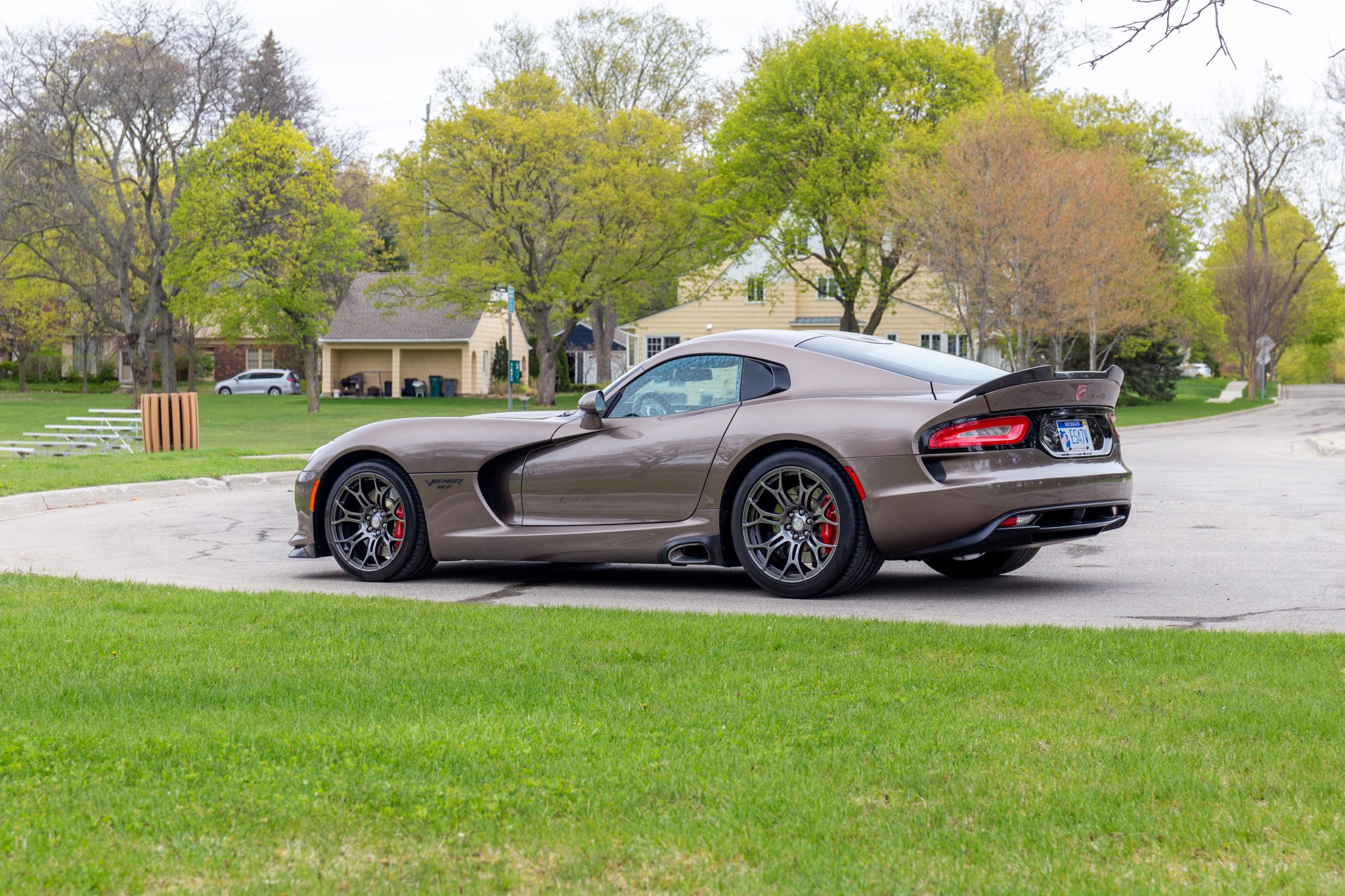 The 18″ front and 19″ rear Sidewinder II wheels are finished in Hyper Black and wrapped in Pirelli P Zero tires sized 295/30 and 355/30 respectively. Braking is through StopTech slotted rotors with red Viper-branded calipers at all four corners.