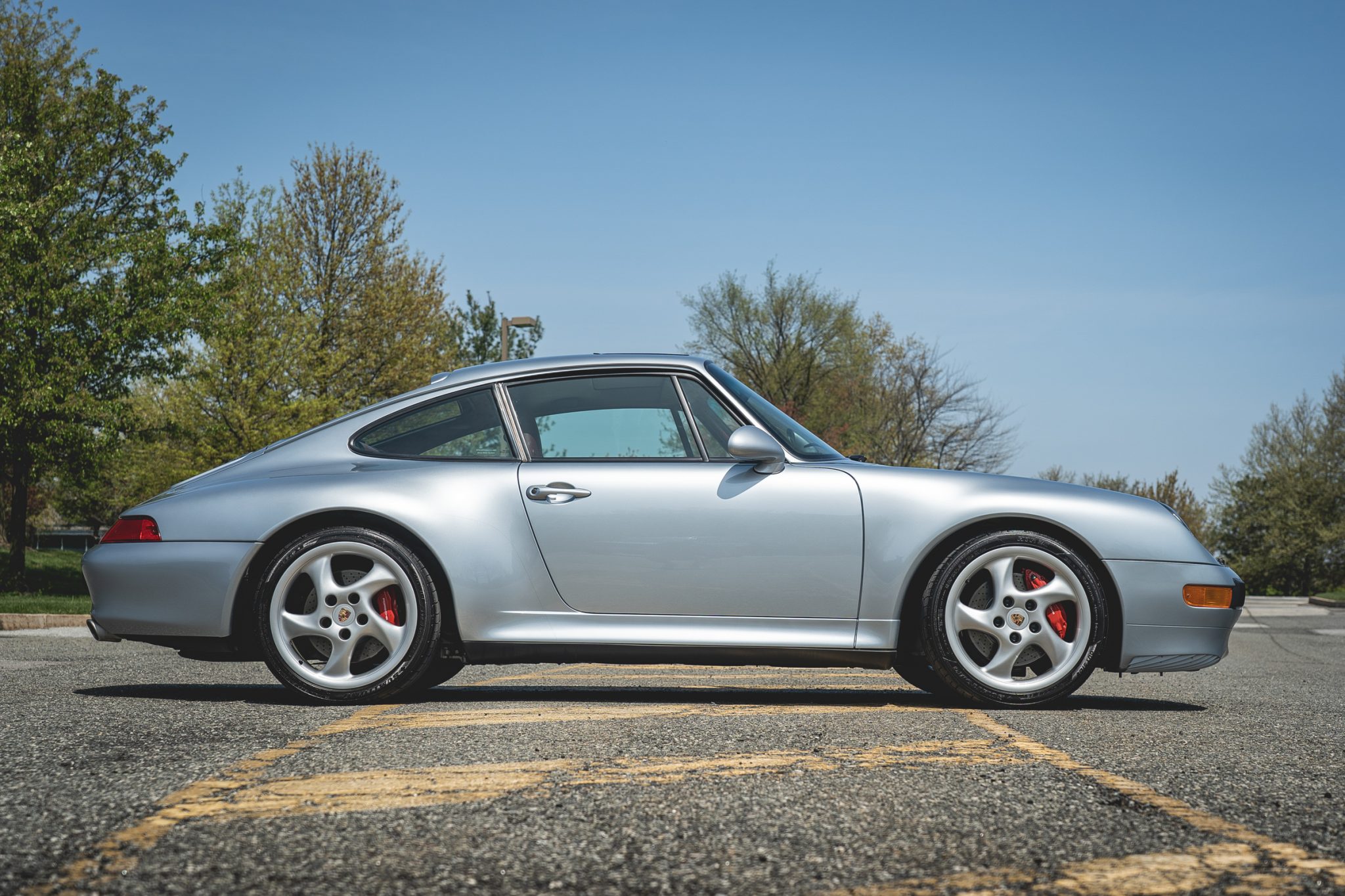 18″ Turbo Twist wheels wear colored Porsche-crest center caps and are mounted with 225/40 front and 285/30 rear Sumitomo HTR ZIII tires. Stopping power is provided by red-finished calipers over cross-drilled rotors, and KW coil-over springs have been fitted at all four corners.