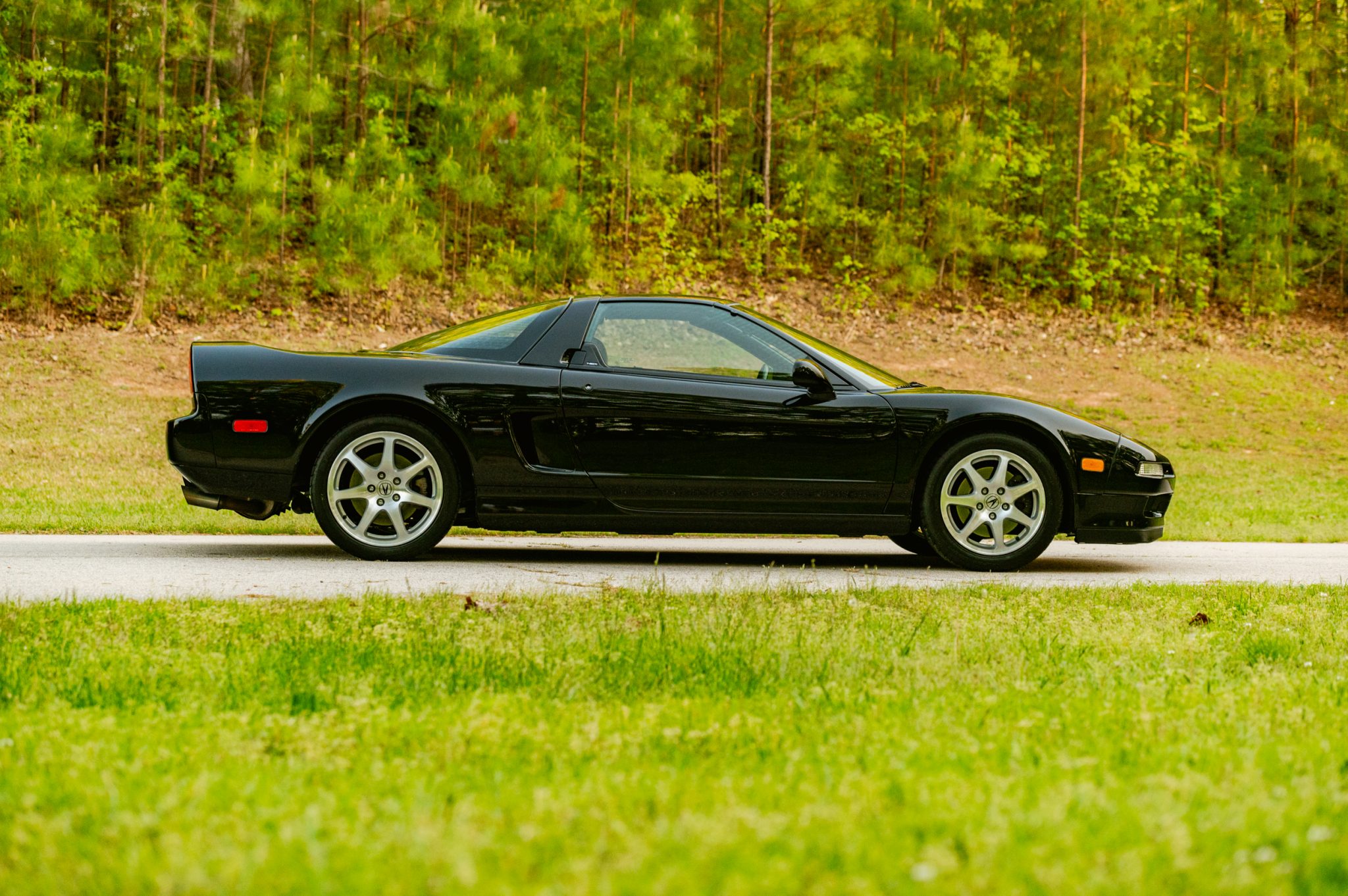 Machine-finished alloy wheels measure 16″ in diameter up front and 17″ out back, and they are mounted with BFGoodrich g-Force Sport tires displaying 2011 date codes and measuring 205/50 and 245/40, respectively. A four-wheel alignment was completed in preparation for the sale. The suspension consists of front and rear double wishbones, and braking is handled by ventilated steel rotors at all four corners with NSX-branded calipers.