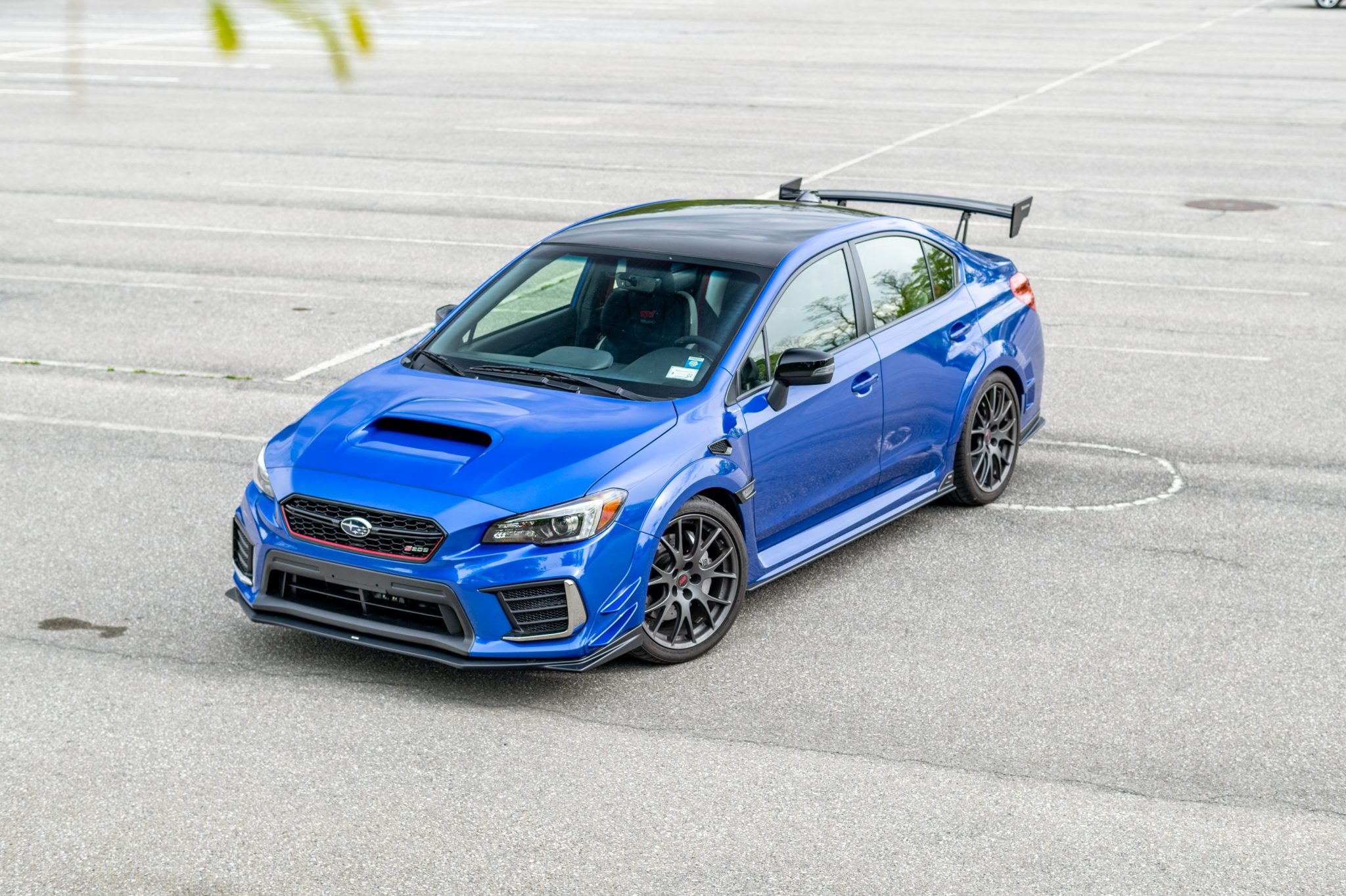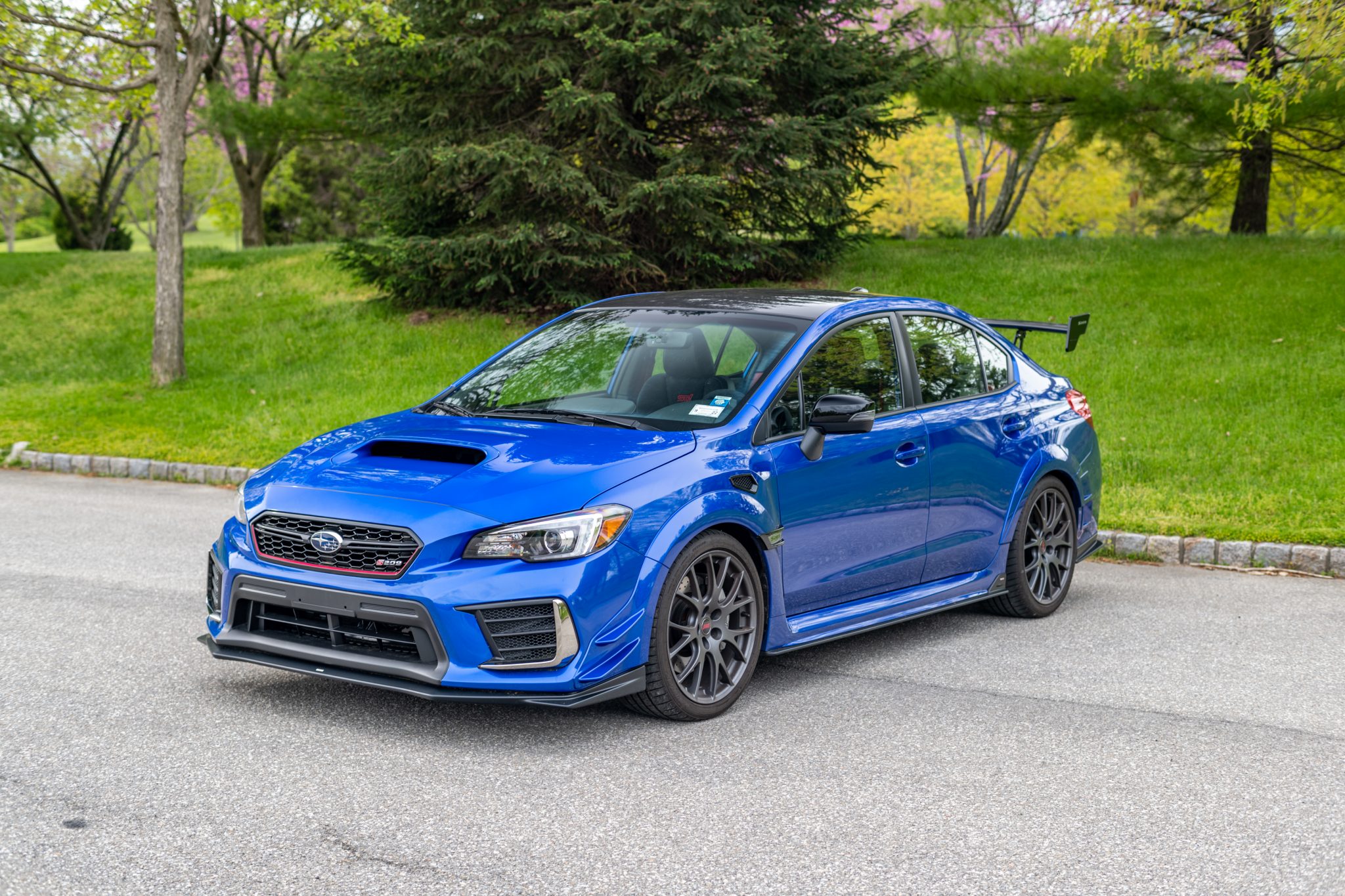Factory 19″ forged wheels feature a satin-gray finish and are wrapped in Dunlop SP Sport Maxx GT 600A tires that measure 265/35 at each corner and were designed for the S209 in conjunction with engineers at STi. Braking is handled by silver-finished Brembo brake calipers paired with cross-drilled rotors at all four corners. Suspension upgrades on the S209 include STi-tuned Bilstein dampers, STi-designed front and rear draw stiffeners, an STi strut tower brace, and pillow-ball suspension bushings.