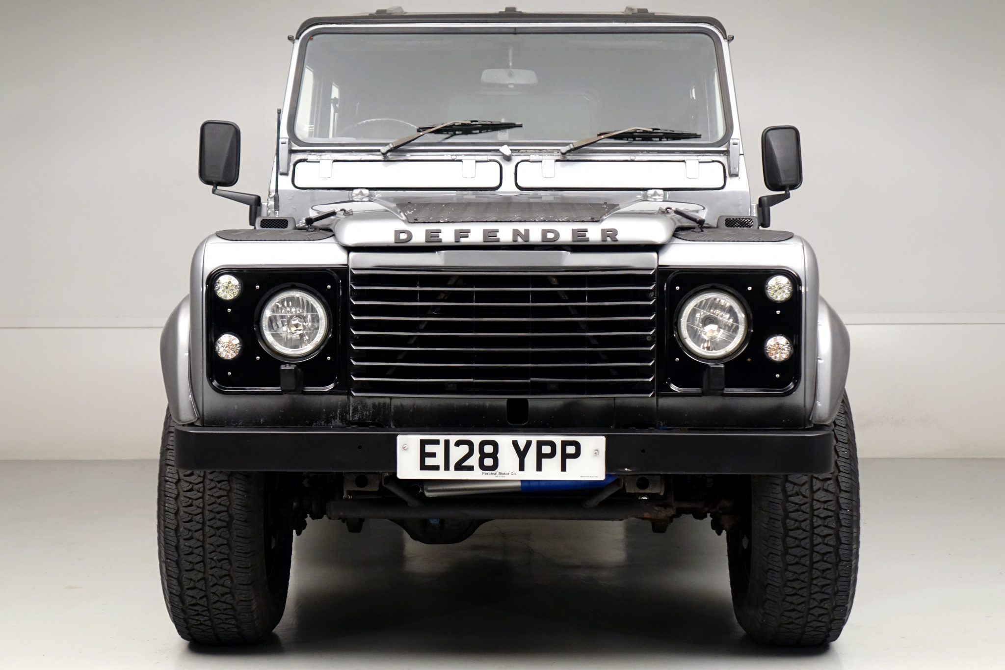 Black-finished aftermarket 18″ wheels wear Land Rover–logo center caps and are mounted with BFGoodrich Rugged Trail T/A tires that show 2012 date codes. The suspension is said to have been modified, and Bilstein shocks were installed in 2019.
