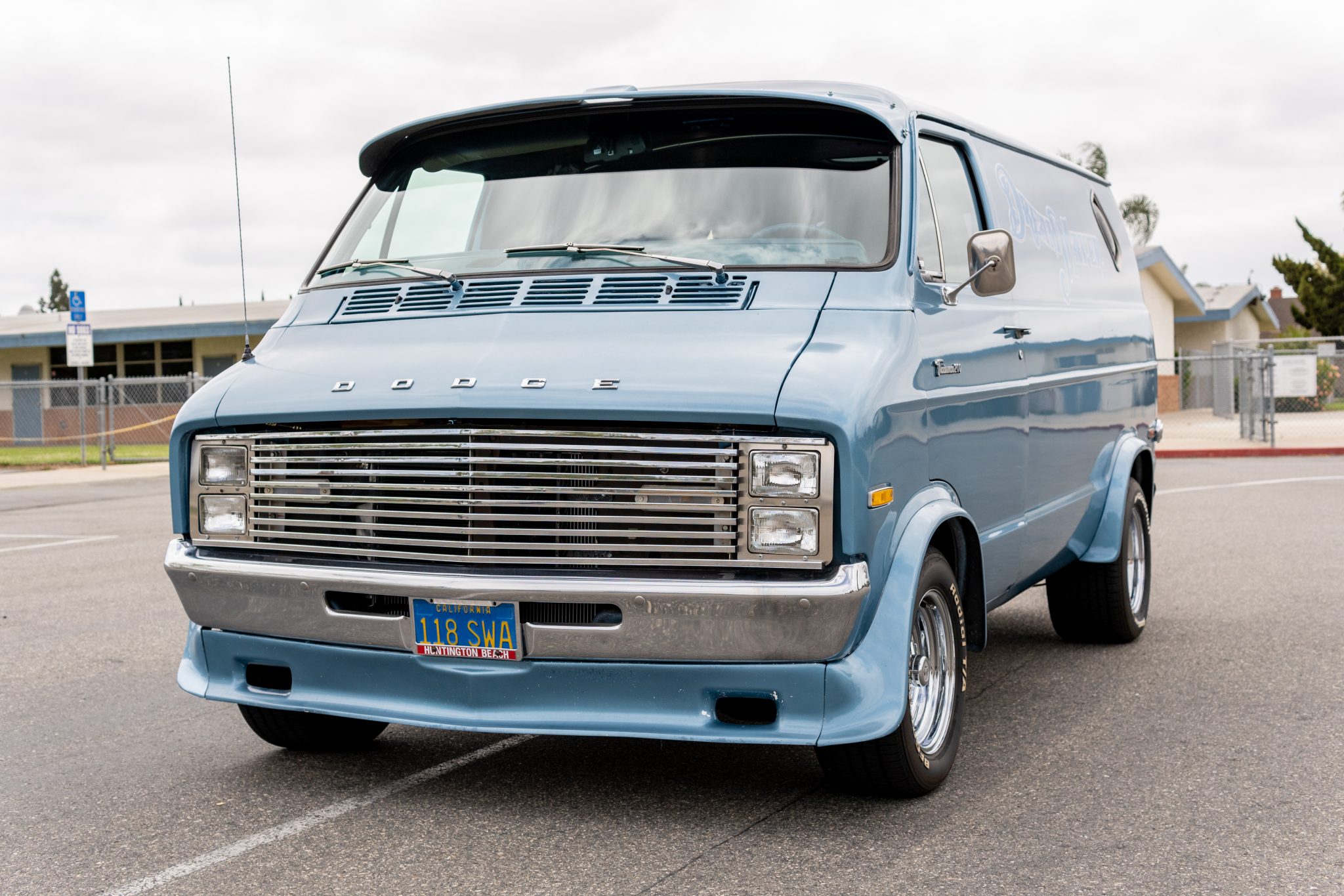 U.S. Wheels Super Spoke 15″ wheels wear 295/50 BFGoodrich T/A tires. Power-assisted front disc brakes were factory equipment, and the seller states that maintenance performed in 2020 included overhauling the braking system.