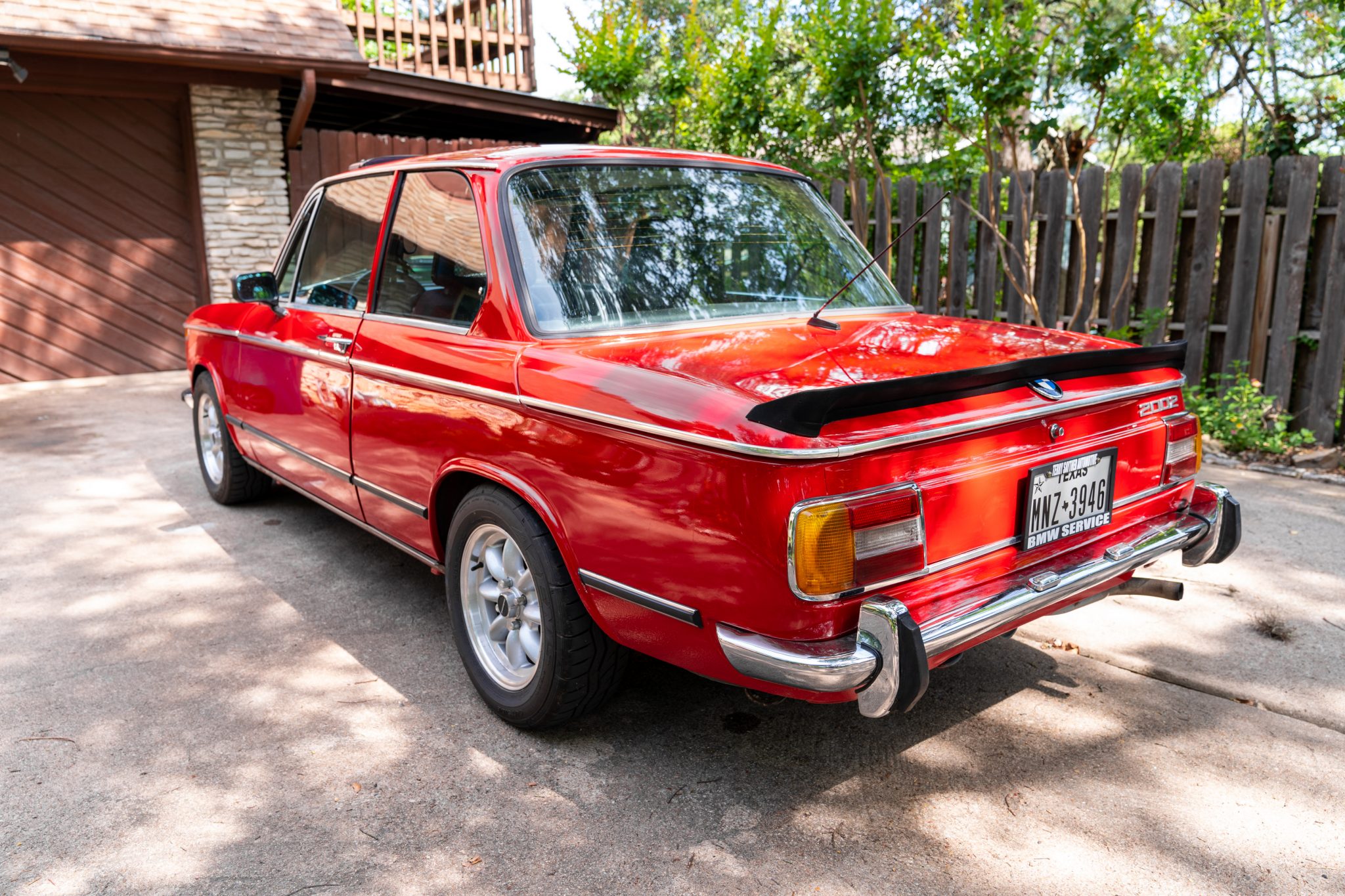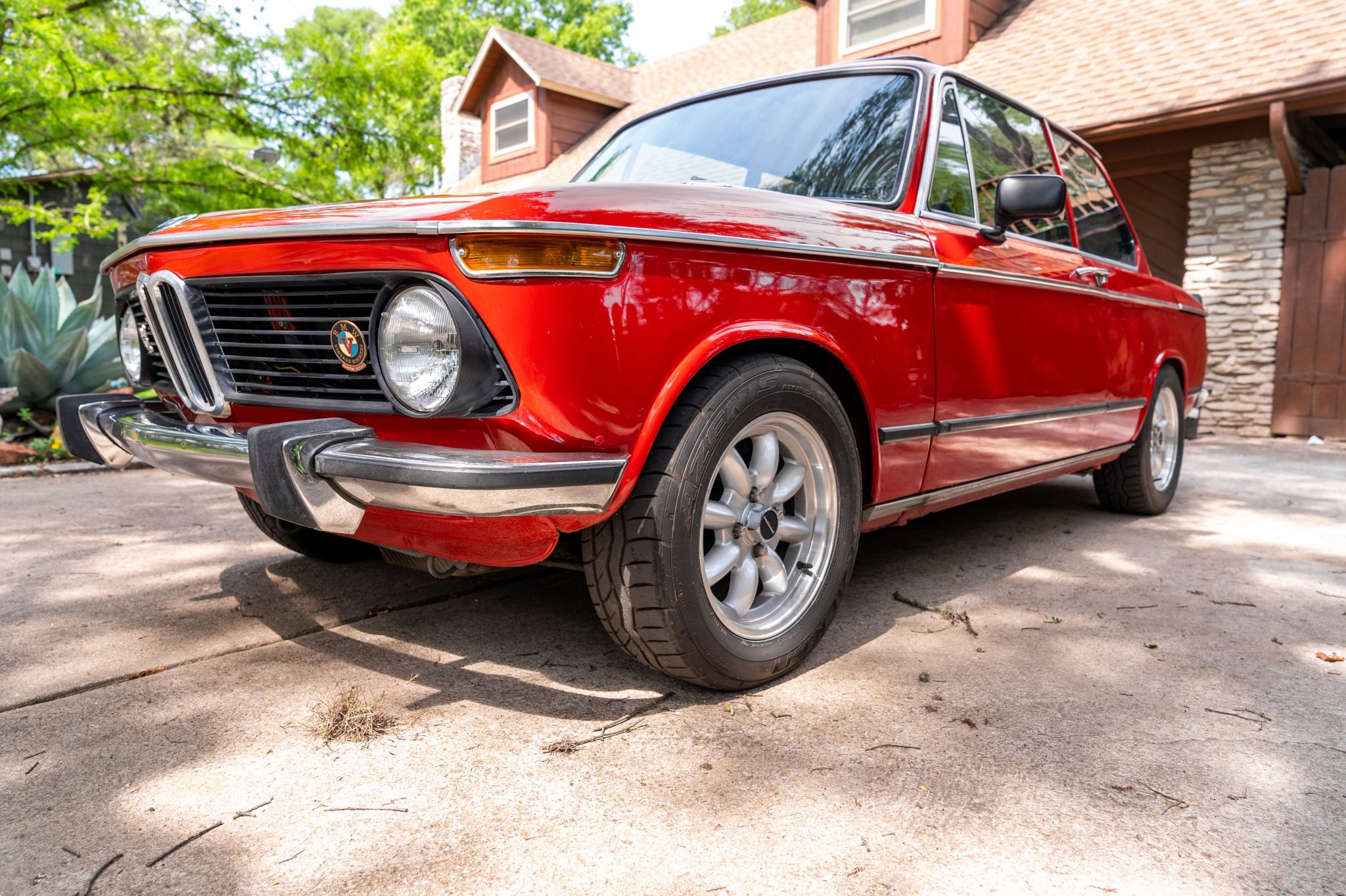 Panasport 14″ wheels are mounted with 195/60 Falken Azenis RT615 tires showing 2018 and 2019 date codes. BMW 2002 tii-style struts, wheel bearings, and brakes have been added up front, while larger brakes from an E21 320i are fitted out back. Suspension modifications consist of Bilstein shocks and struts as well as Suspension Techniques sway bars and lowering springs.