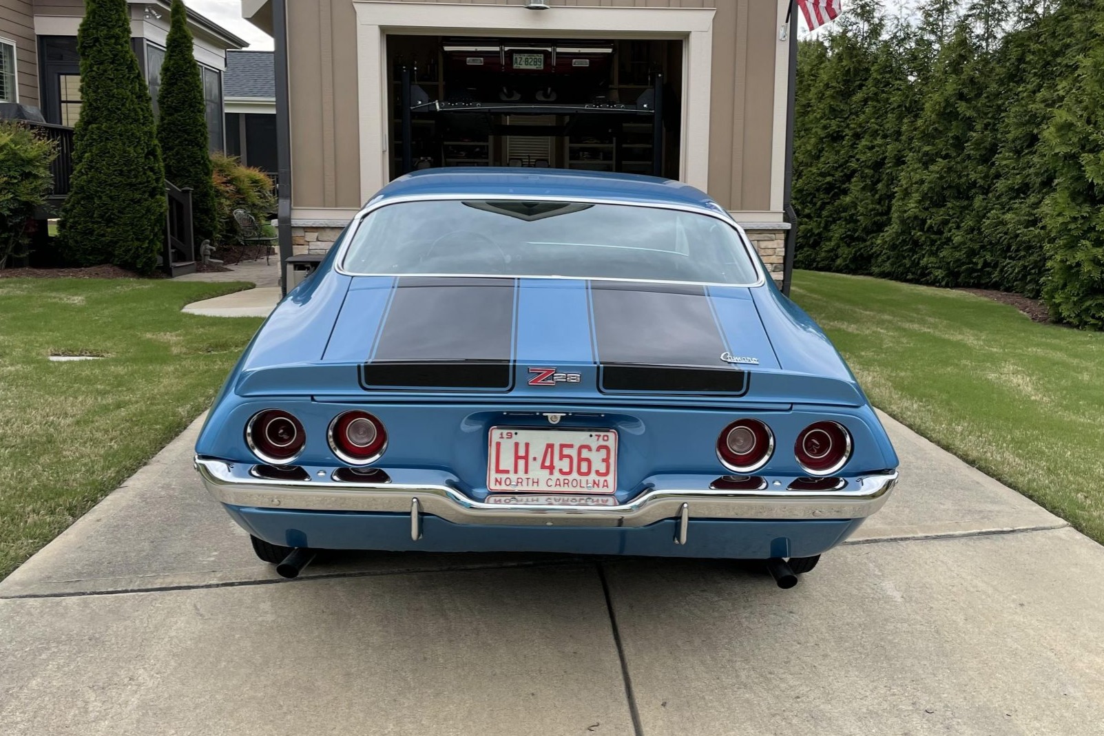 The five-spoke 15″ Kelsey Hayes-style wheels feature bowtie center caps, polished lips, and wear white-letter Goodyear Polyglas GT tires. The car is equipped with power-assisted steering and optional special suspension, which incorporates stiffer springs, a larger front swaybar, and added a rear swaybar. The brake and master cylinders are said to have been replaced in March 2020.