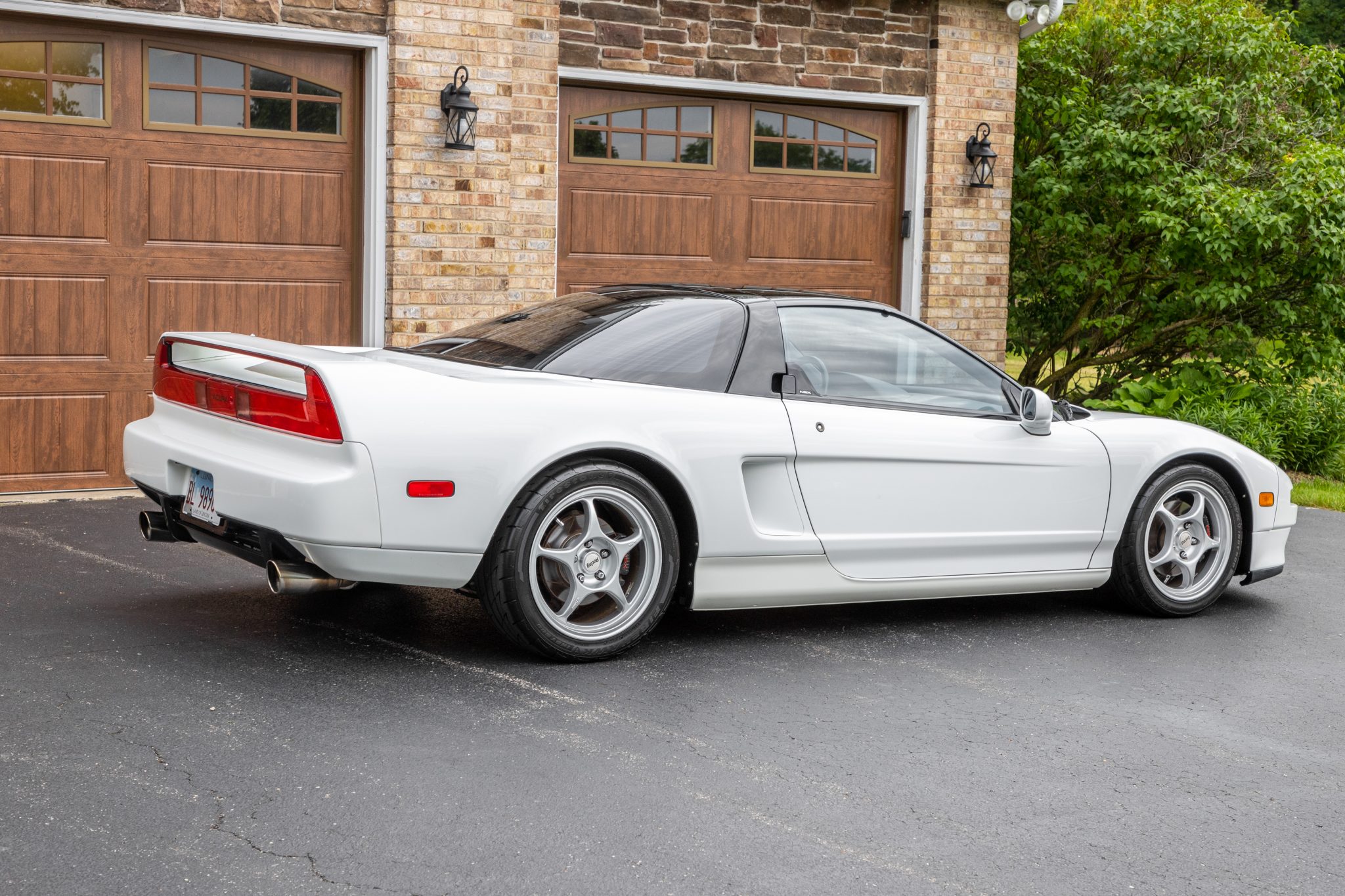 Silver-finished 16″ and 17″ Enkei wheels are mounted with Firestone Firehawk Indy 500 tires that measure 205/45 up front and 255/40 out back. Black-finished NSX-branded calipers are fitted over slotted rotors at all four corners, and the anti-lock system has been updated with a Science of Speed NA2 conversion. Bilstein dampers have been fitted at the rear, and additional modifications consist of Comptech sway bars and rear toe links along with NSX-R front chassis reinforcement bars.