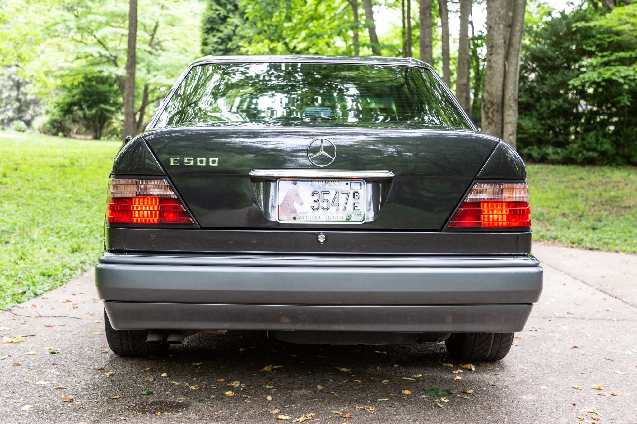 Factory 16″ eight-hole wheels are mounted with 225/55 Continental ExtremeContact DWS Tuned tires that show date codes from 2011. E500 equipment includes four-wheel disc brakes as well as a self-leveling suspension system. Records indicate that power-steering components and the front stabilizer bar bushings were replaced in 2018.