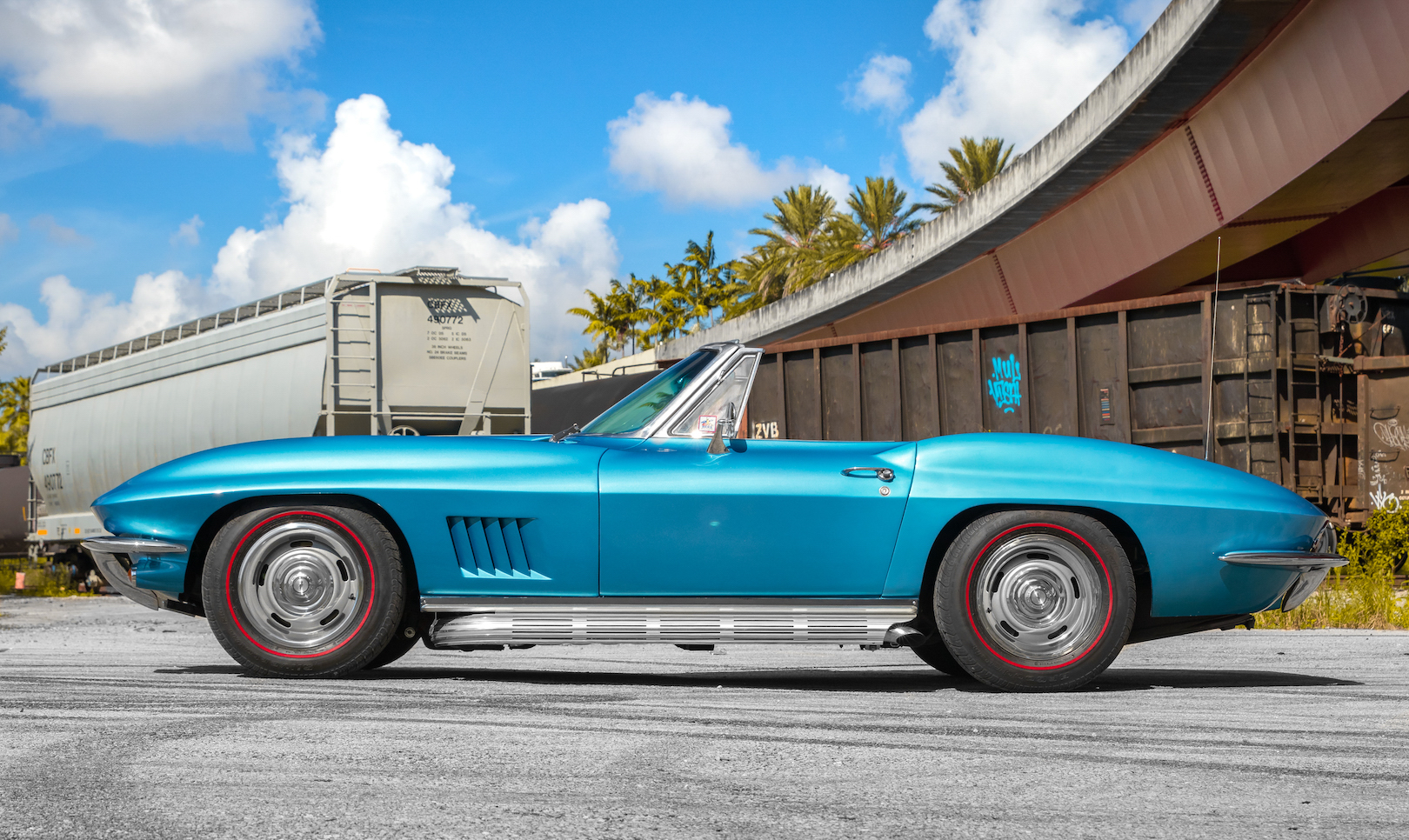 Silver-painted 15″ Rally wheels are fitted with chrome trim rings and hubcaps as well as BFGoodrich Silvertown redline tires showing 2014 date codes. Braking is provided by four-wheel discs.