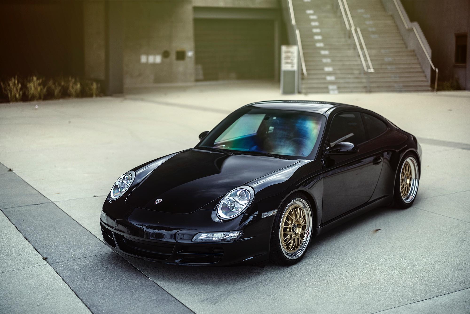 19″ BBS E88 wheels with gold-finished centers are wrapped in 235/35 front and 305/30 rear Michelin Pilot Sport Cup 2 N0 Porsche Spec tires. The suspension has been modified with 997 GT3 PASM coilovers and spherical camber plates, and an alignment was carried out after installation. This car is fitted with optional Porsche Ceramic Composite Brakes (PCCB), which are distinguished by yellow-painted calipers.