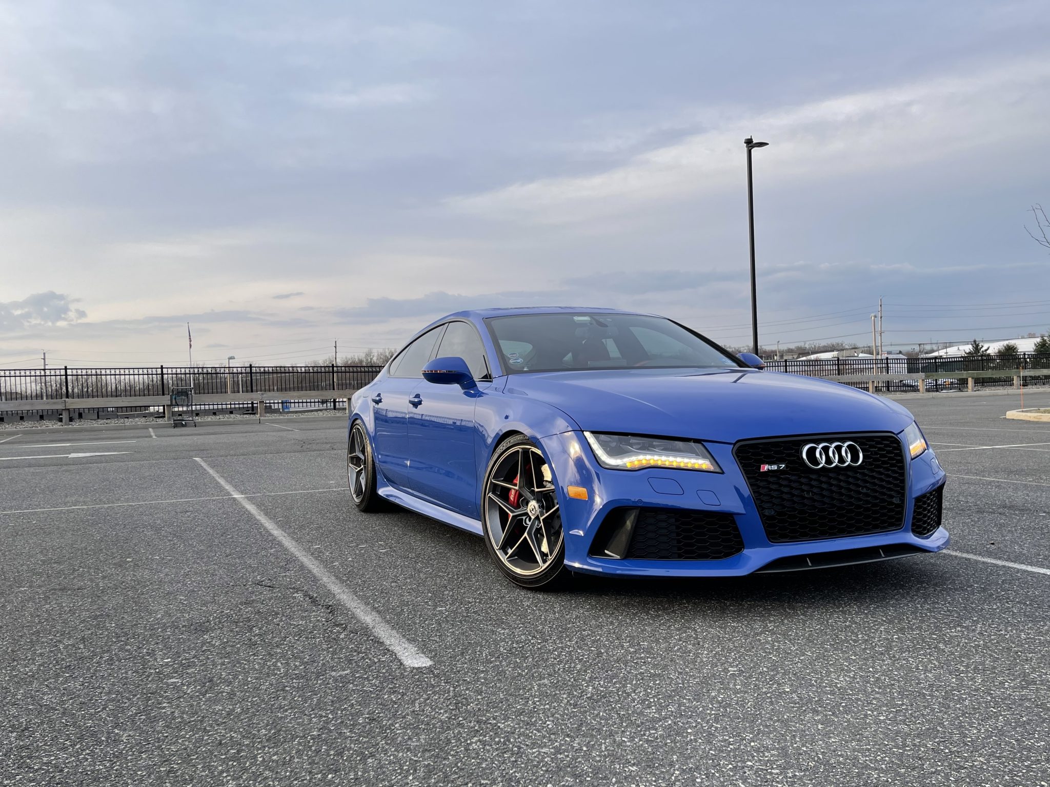HRE F11 20″ wheels are mounted with 275/35 Michelin Pilot Sport A/S3+ tires. The suspension is said to be modified with Bilstein PSS10 coilovers. Stopping power is provided by cross-drilled and ventilated rotors along with red RS-branded calipers at all four corners.