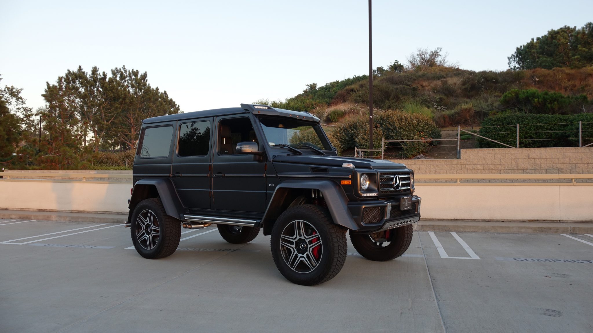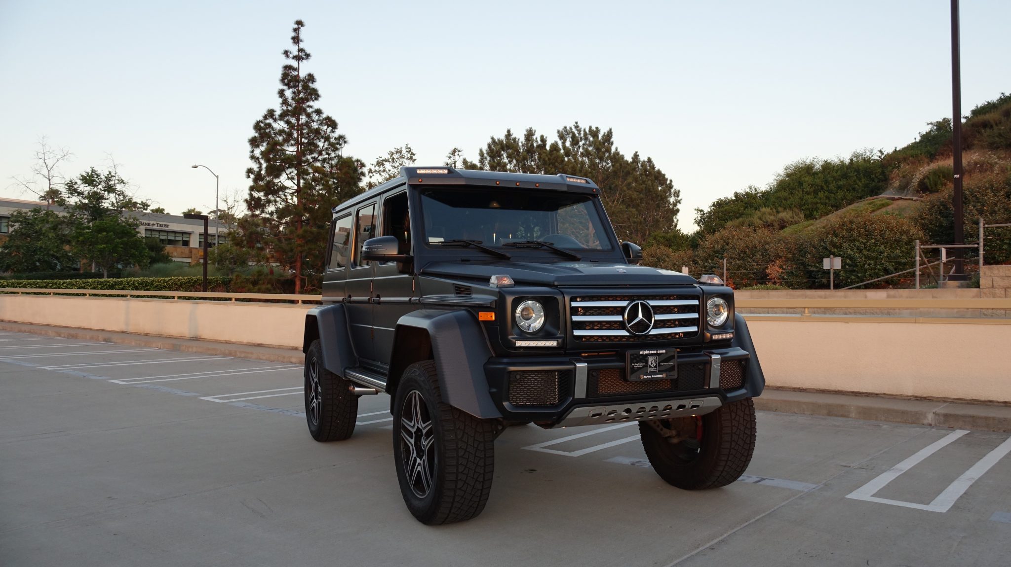 Factory 22″ alloy wheels are wrapped in 325/55 Pirelli Scorpion ATR tires. The G550 4×4² features factory-equipped portal axles and two parallel coilovers per corner, which results in 17.7″ of ground clearance and a water fording depth limit of 39″. Stopping power is provided by cross-drilled rotors and red-finished six-piston front calipers.