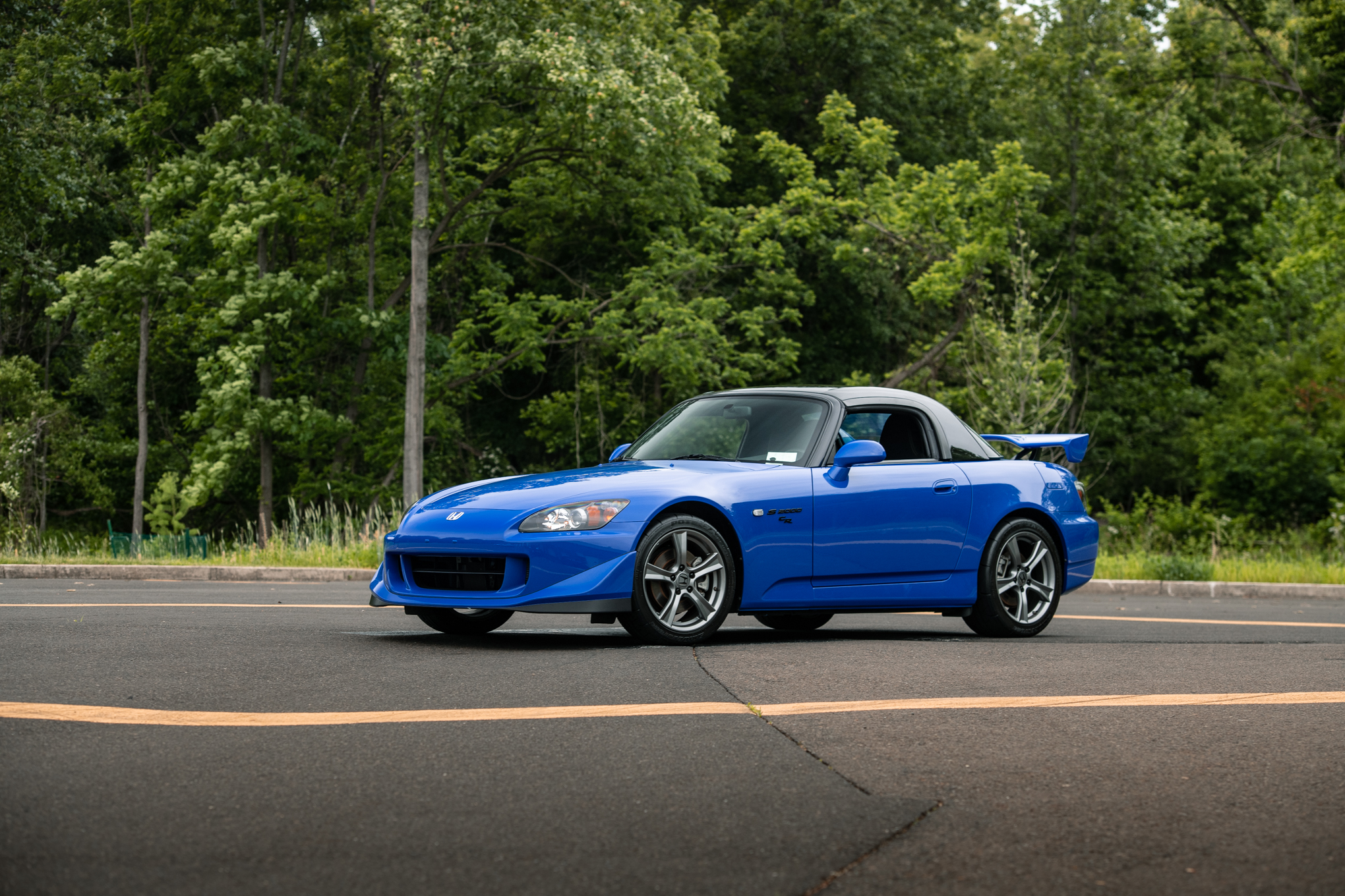 Factory 17″ wheels wear 215/45 front and 255/40 rear Bridgestone Potenza RE070 tires bearing 2007 date codes. The Club Racer model features higher-rate springs, stiffer anti-roll bars, and a quicker steering ratio compared to the standard AP2 S2000, and it is also equipped with anti-lock brakes and stability control.