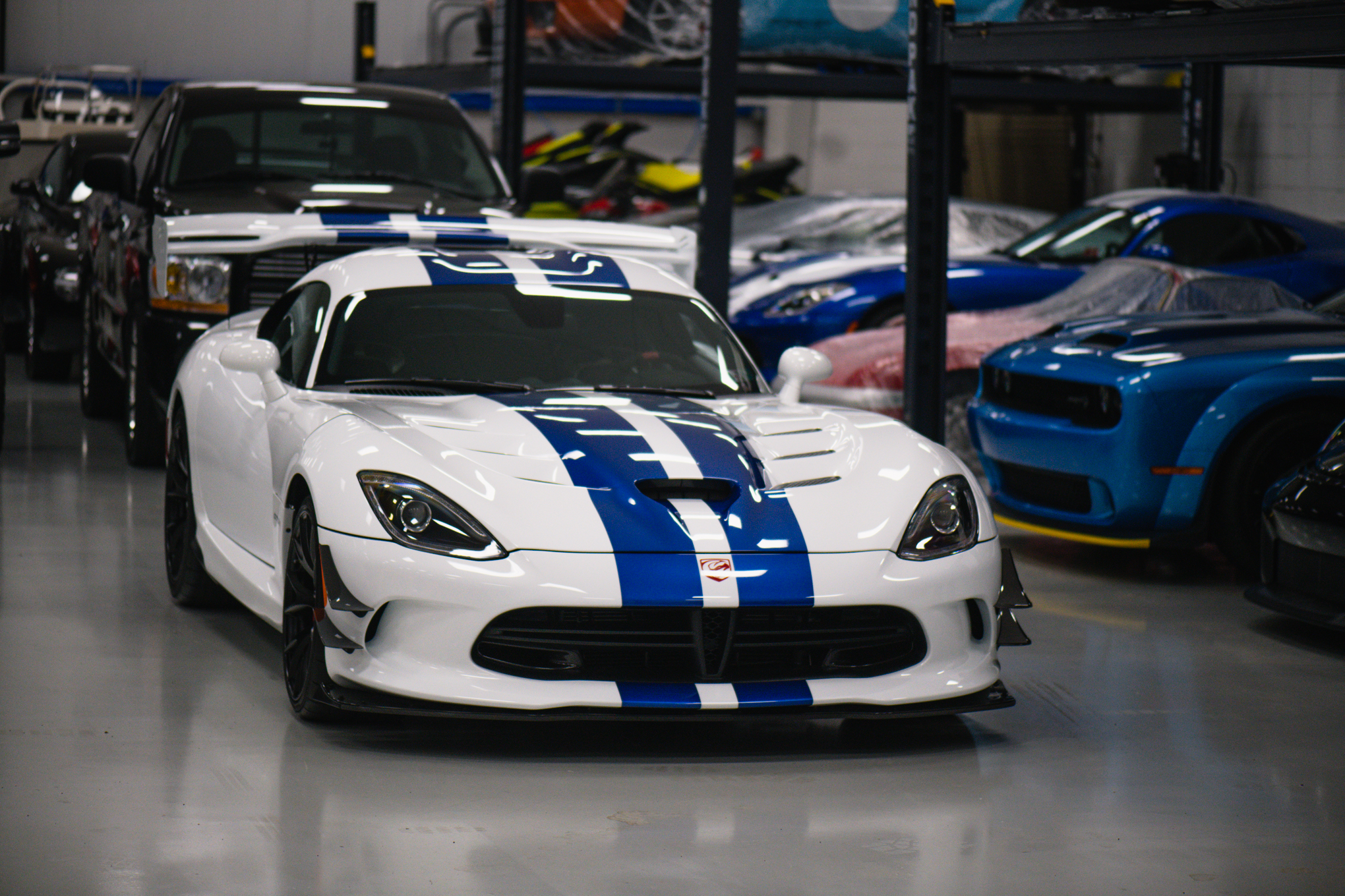 Viper White w/ Blue Stripes
