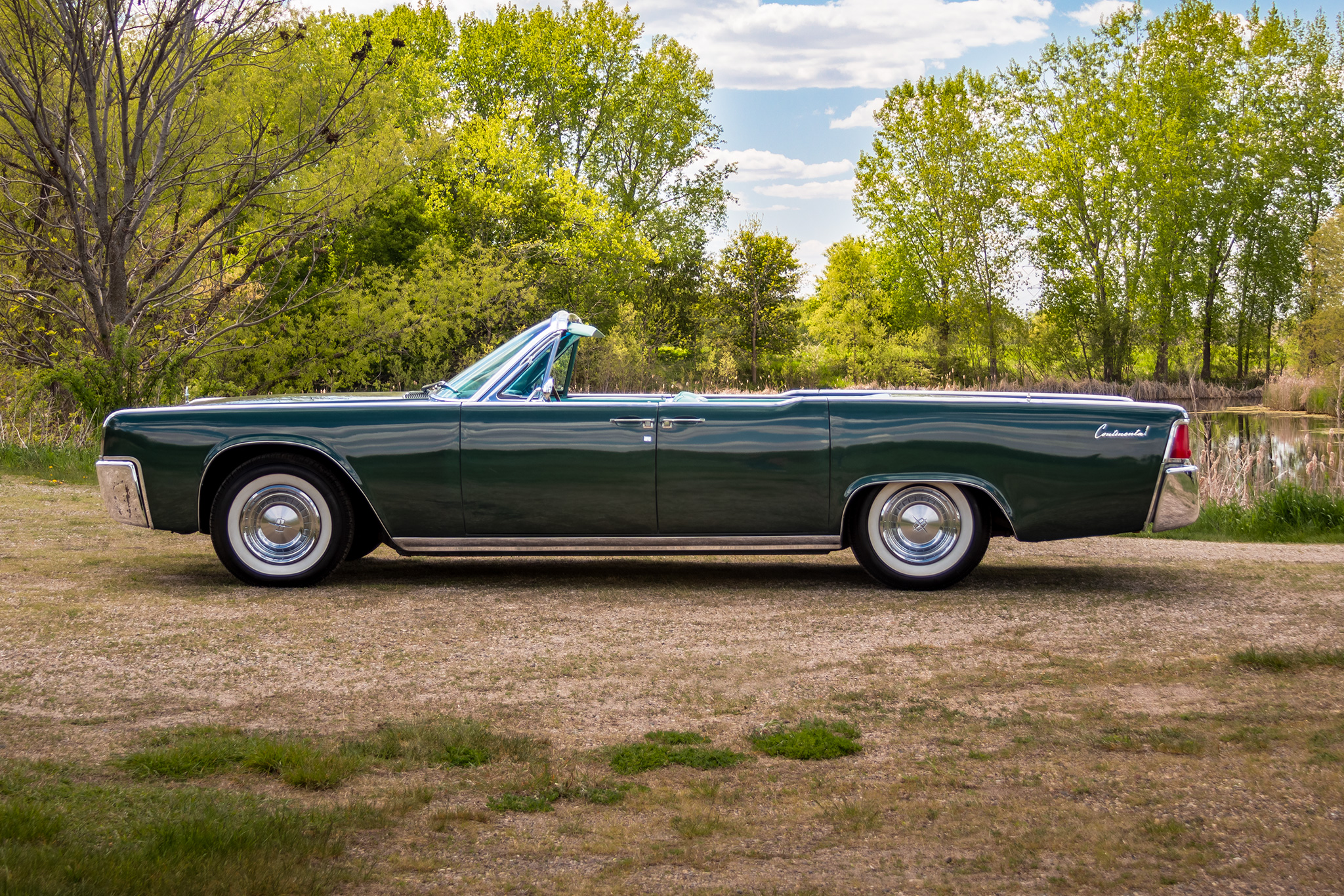 Steel wheels wear Lincoln-branded hubcaps and are mounted with whitewall tires. Power-assisted steering and brakes were standard equipment.