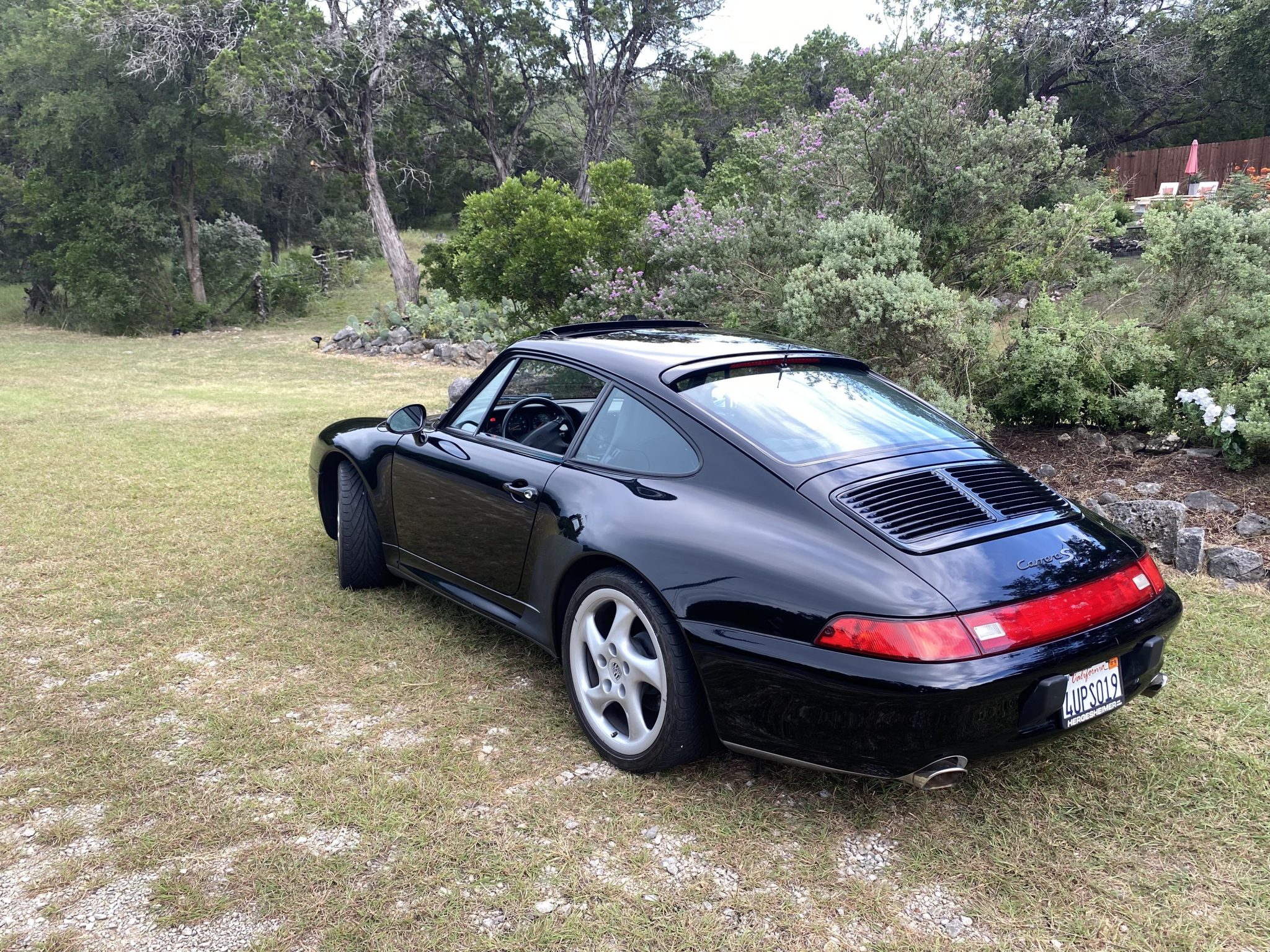 Silver-finished 18″ Turbo Twist wheels are mounted with 225/40 front and 285/30 rear Bridgestone S-02 tires that show date codes from 2000 and 2004, respectively. Braking is handled by four-piston Porsche-branded calipers over cross-drilled rotors at all four corners.