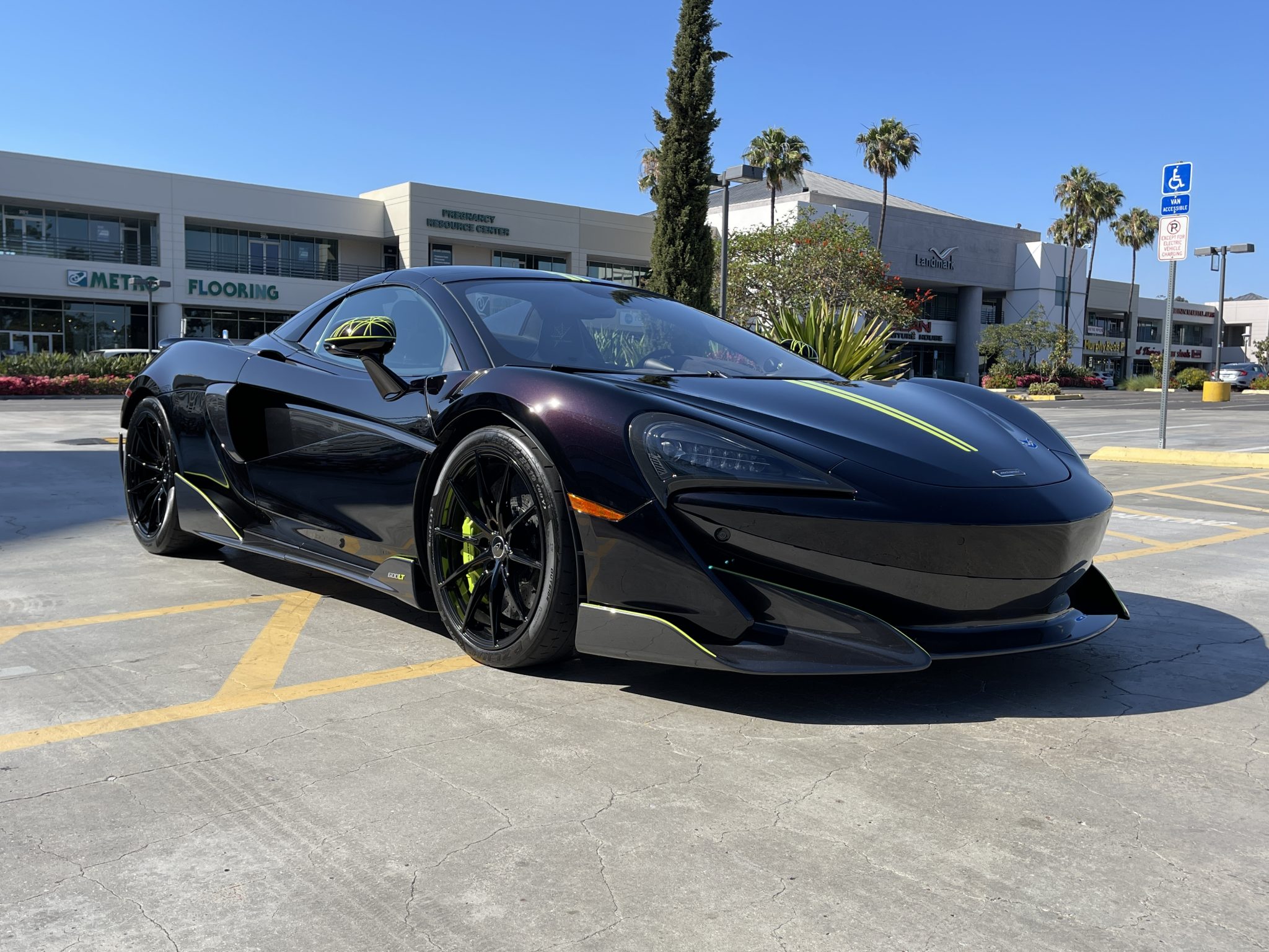 Staggered-diameter 19″ and 20″ 10-spoke forged aluminum wheels with titanium wheel bolts wear 225/35 front and 285/35 rear Pirelli P Zero Trofeo R tires. The carbon-ceramic brakes feature six- and four-piston Napier Green-painted calipers. A front axle lift system was equipped from the factory.