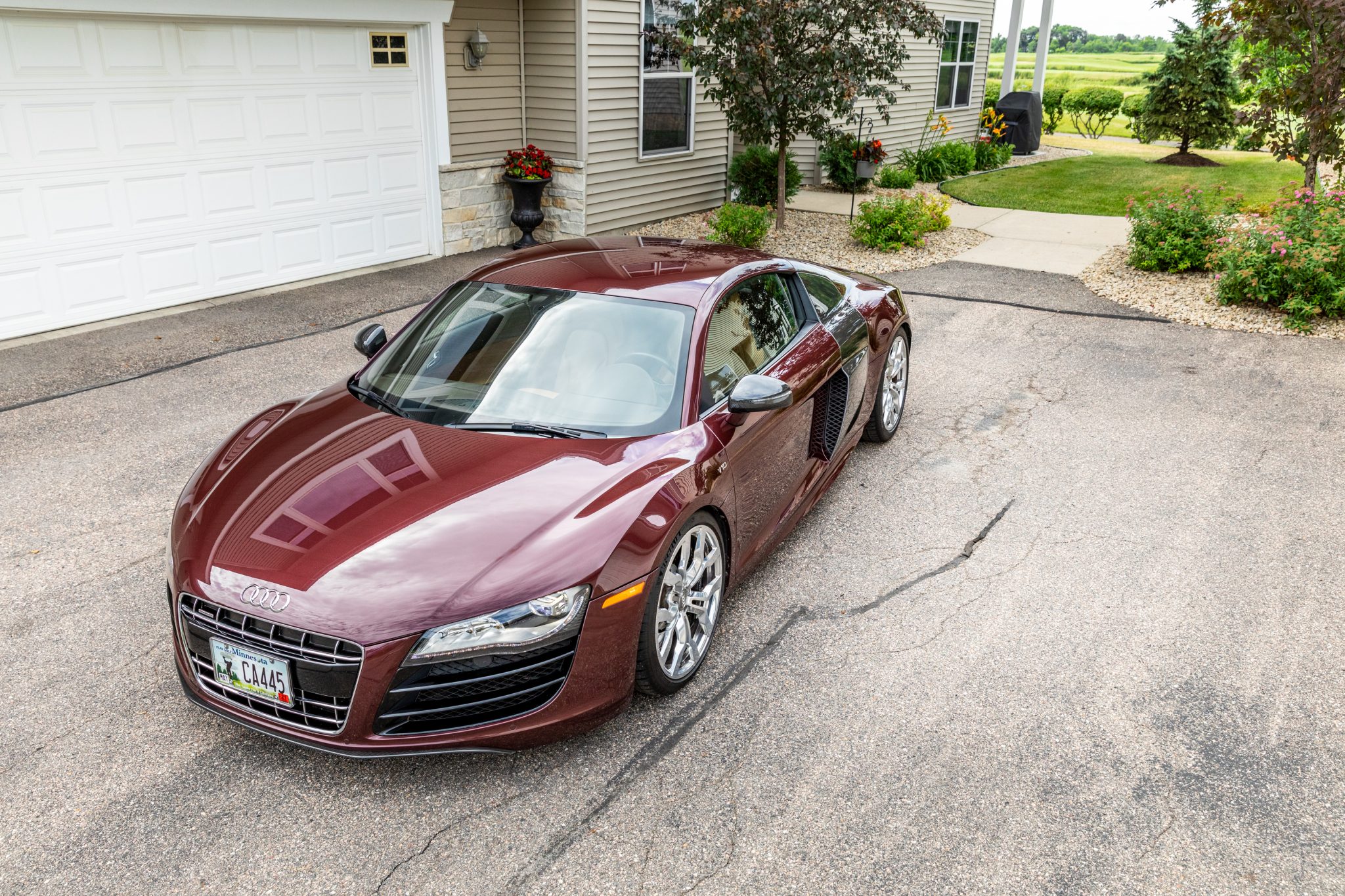 Polished and forged 19″ Y-design wheels wear Michelin Pilot Sport 4S tires measuring 235/35 up front and 305/30 out back. Stopping power is provided by cross-drilled discs with R8-branded calipers at all four corners. A KW Variant 4 suspension kit with triple-adjustable shocks and adjustable-perch springs was installed in August 2021.