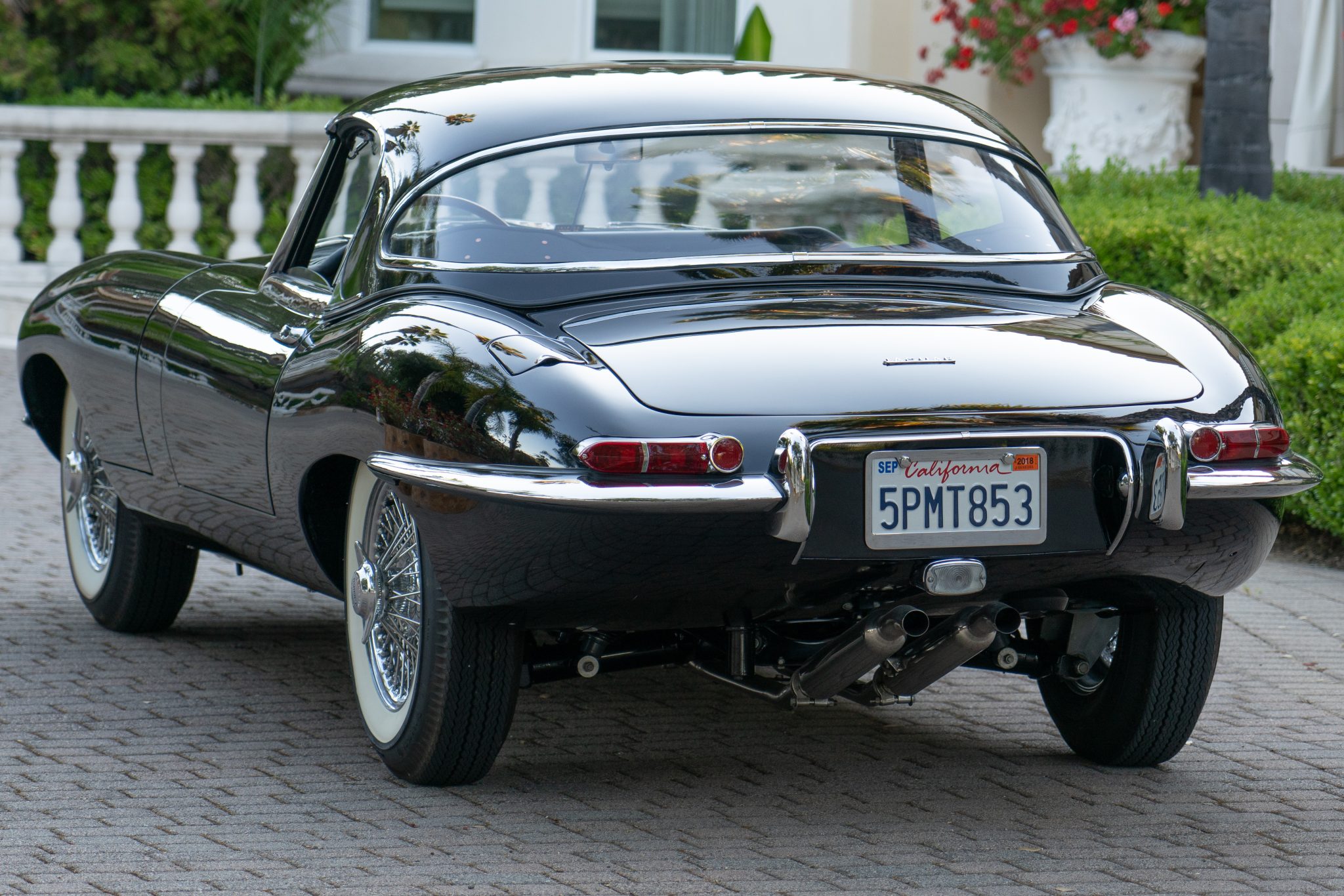 Chrome-finished 15″ Dayton wire wheels were installed during the refurbishment, and they are secured with two-eared knockoffs and mounted with 6.40-15 Firestone whitewall tires. Additional work included fitting Koni shocks and polyurethane bushings along with re-sleeving the wheel cylinders and the replacement of the wheel bearings, universal joints, and rear springs. The calipers were re-plated and the hardware was powder coated, and the brake pads, rotors, lines, and hoses were also replaced. The seller notes that brass sleeves were installed in the hydraulic cylinders, and the independent rear suspension was disassembled and refurbished.