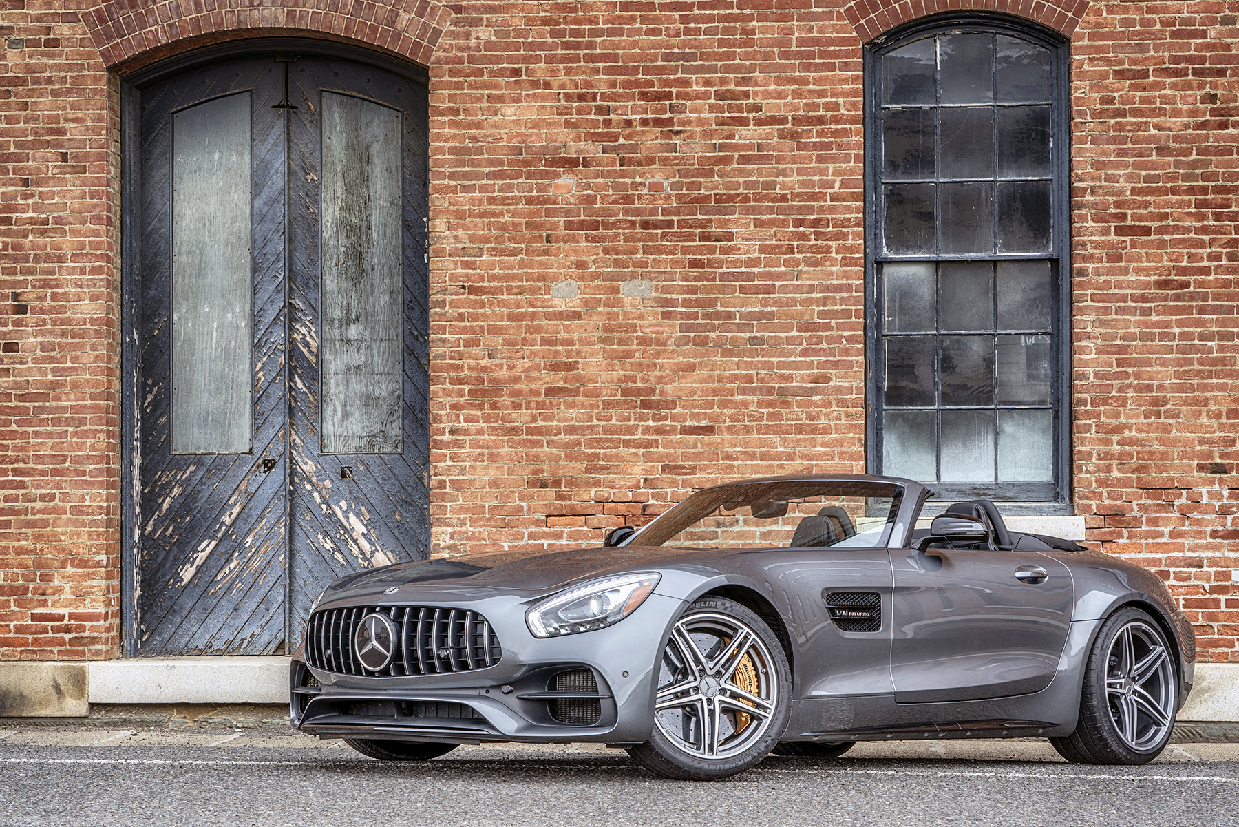 AMG split-spoke wheels measure 19″ in front and 20″ out back and are wrapped in Michelin Pilot Super Sport tires showing 2020 date codes. Braking is handled by optional carbon-ceramic rotors and gold-painted calipers along with an Adaptive Brake Technology system. The AMG Adaptive Sport suspension features forged dual wishbones, along with a rear-axle steering system.