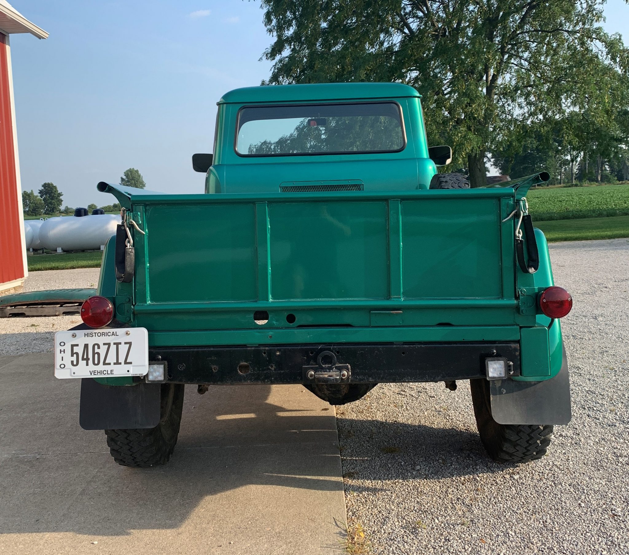 White-finished 16” steel wheels are wrapped with 7.5”-width Super Traction King tires, and a matching spare is mounted on the side of the bed. Manually-locking hubs are fitted up front and the brake system is said to have been refreshed during current ownership, including replacement lines, wheel cylinders, springs, and shoes.