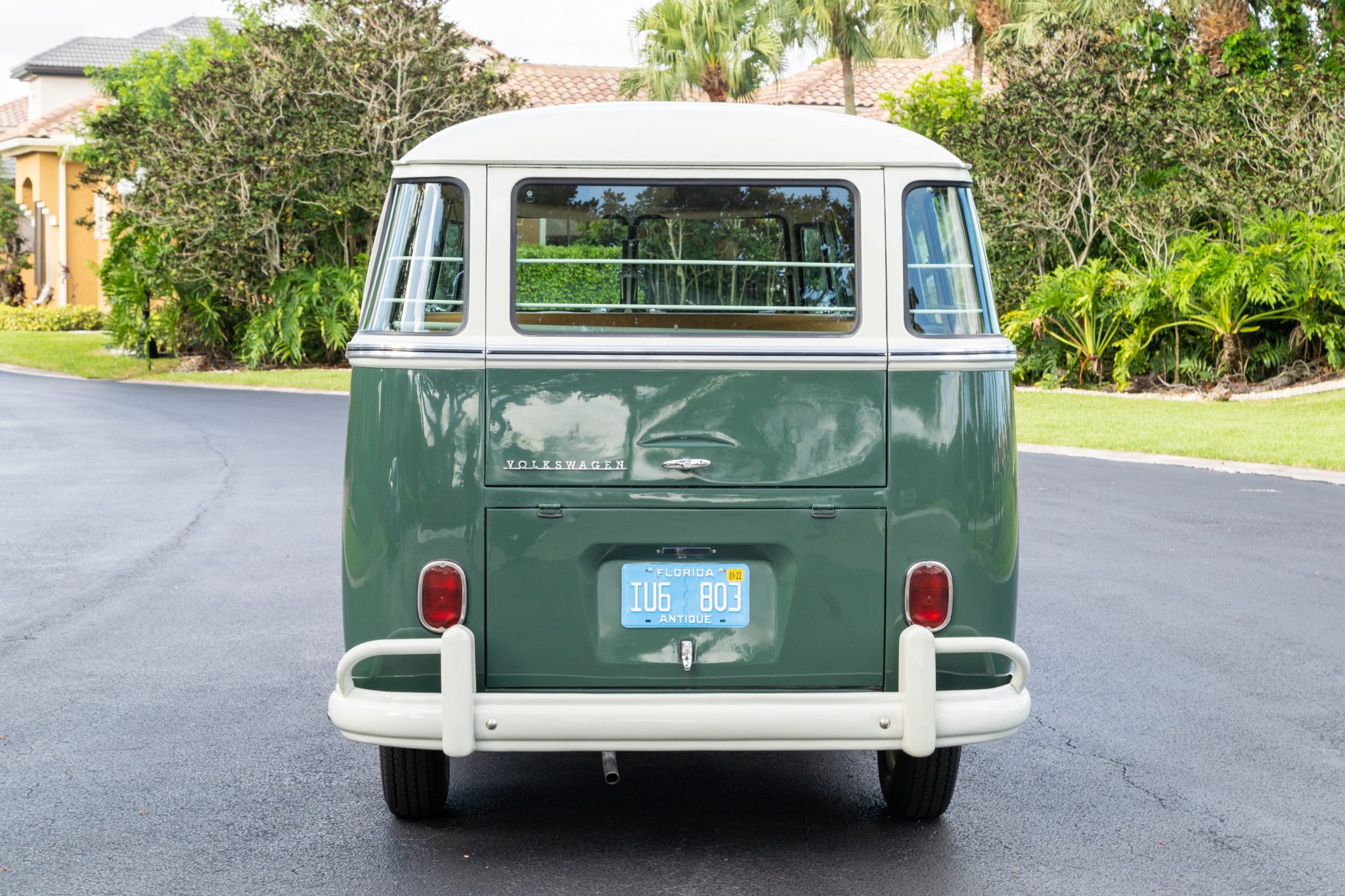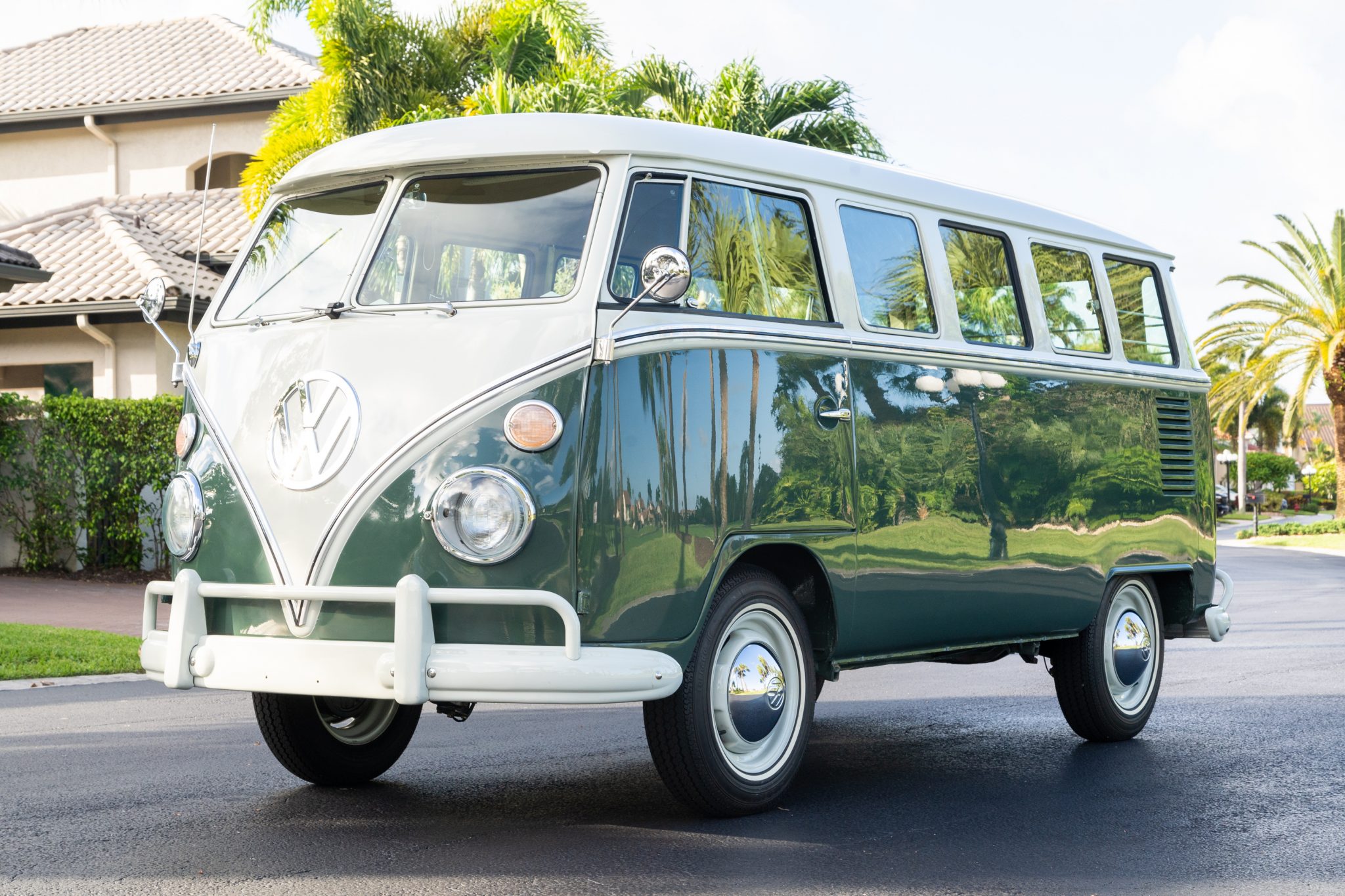 White-painted steel wheels wear chrome VW hubcaps and Pirelli Tornado Alfa tires. A matching spare is located behind the front seat. The suspension and drum brakes are said to have been replaced with aftermarket parts during the refurbishment, and the seller states that the steering box was rebuilt.