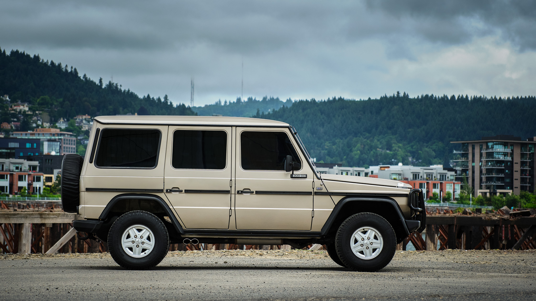 Mercedes-Benz R4 15″ alloy wheels are fitted with 31 x 10.50″ BFGoodrich All-Terrain T/A KO tires. Braking is handled by front discs and rear drums.