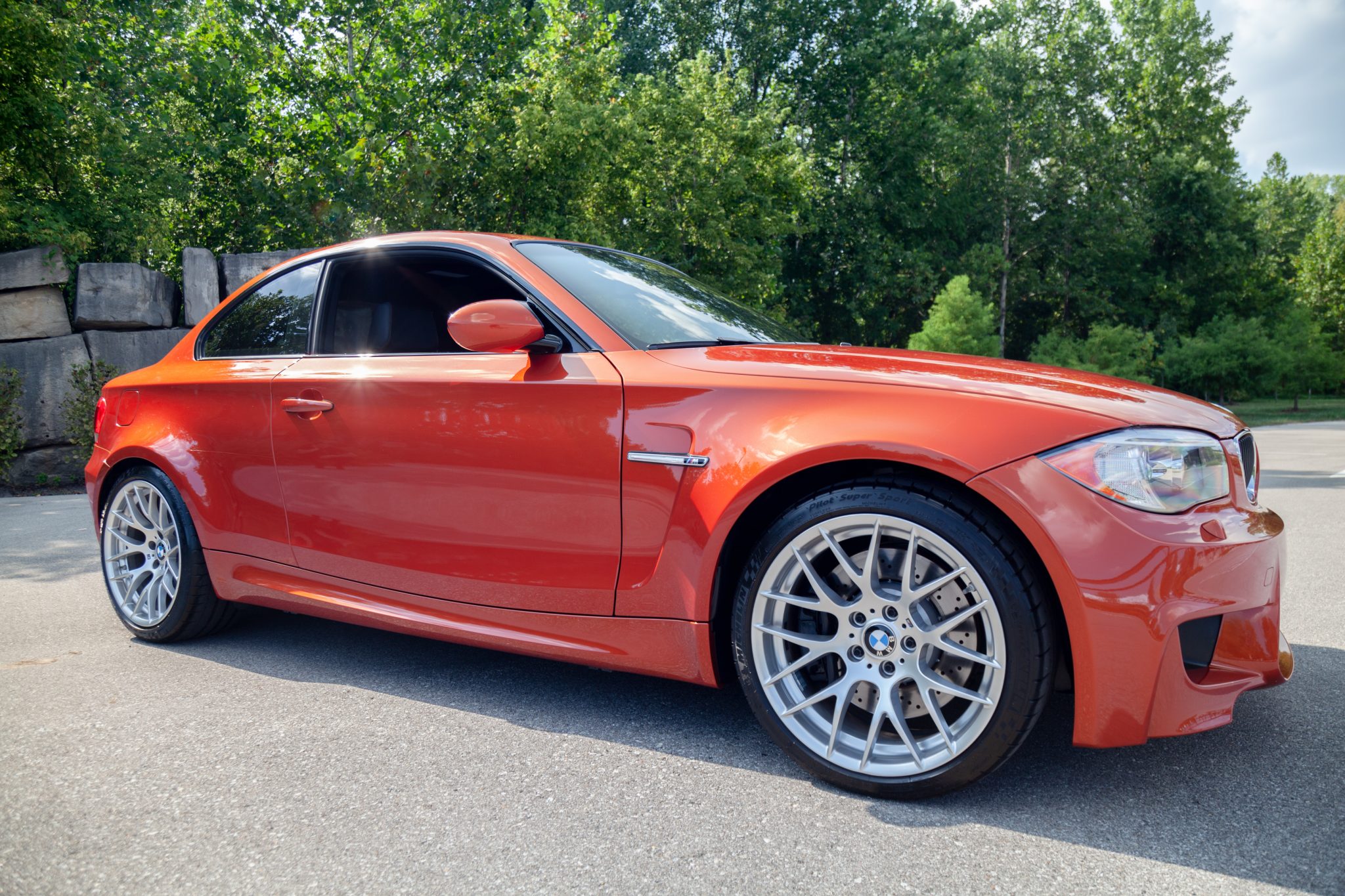 Silver 19″ Style 359 wheels are mounted with 245/35 front and 265/35 rear Michelin Pilot Super Sport tires showing 2012 and 2016 date codes. Stopping power is from disc brakes with cross-drilled rotors at all four corners, and a brake-fluid flush was performed in preparation for the sale. The 1M shares its rear subframe as well as suspension and braking components with its contemporary M3.