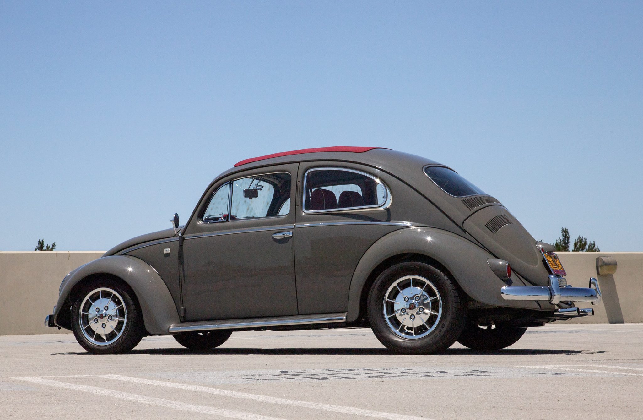 Polished Mahle “gas burner” 15″ wheels reportedly sourced from a Porsche are mounted with BFGoodrich tires. The car is equipped with independent rear suspension as well as vented, slotted, and drilled disc brakes at all four corners, and modifications include rear trailing arms from a Porsche 944 CV joints from a Porsche 930.